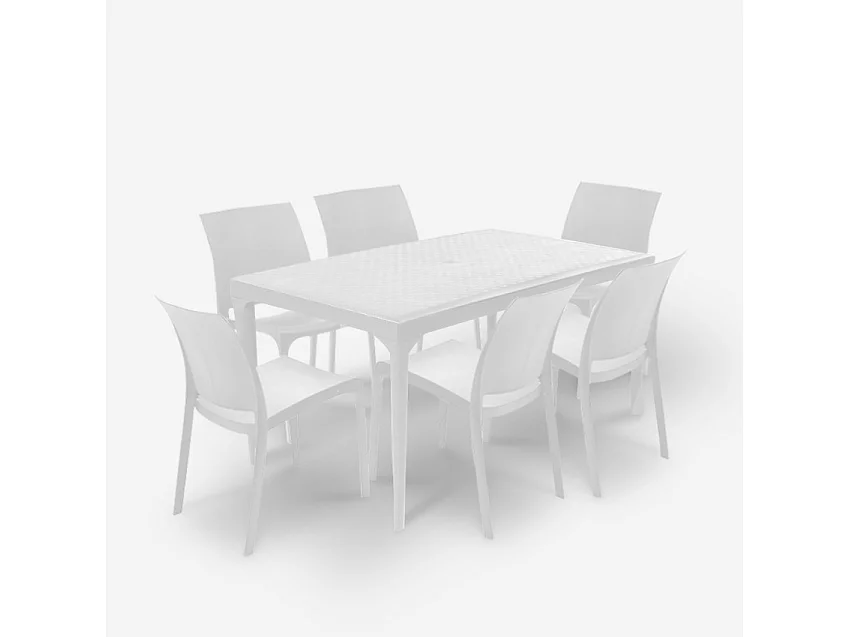 Conjunto de jardín 6 sillas y 1 mesa de exterior de 150x90 cm color blanco Sunrise Light