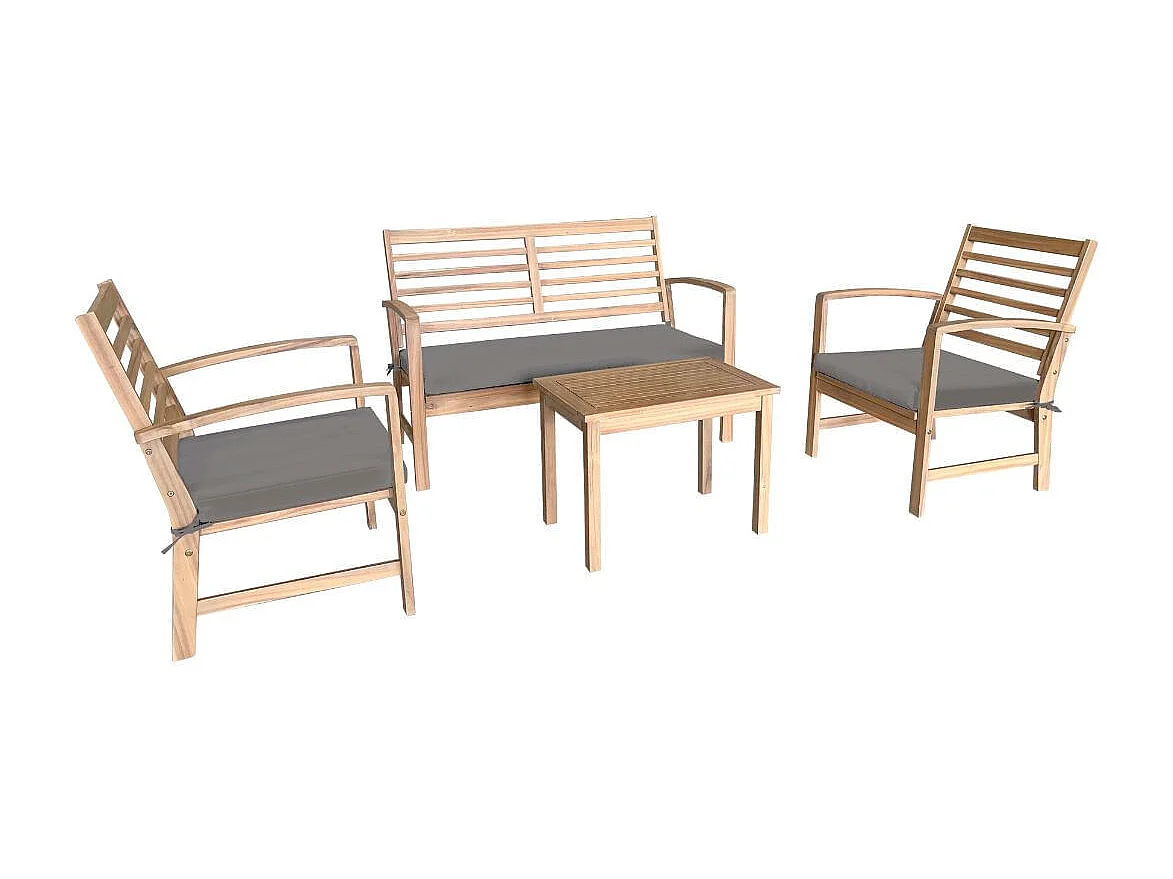 Conjunto de jardín Acacia sofá + 2 sillas + mesa natural/gris