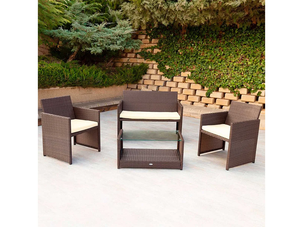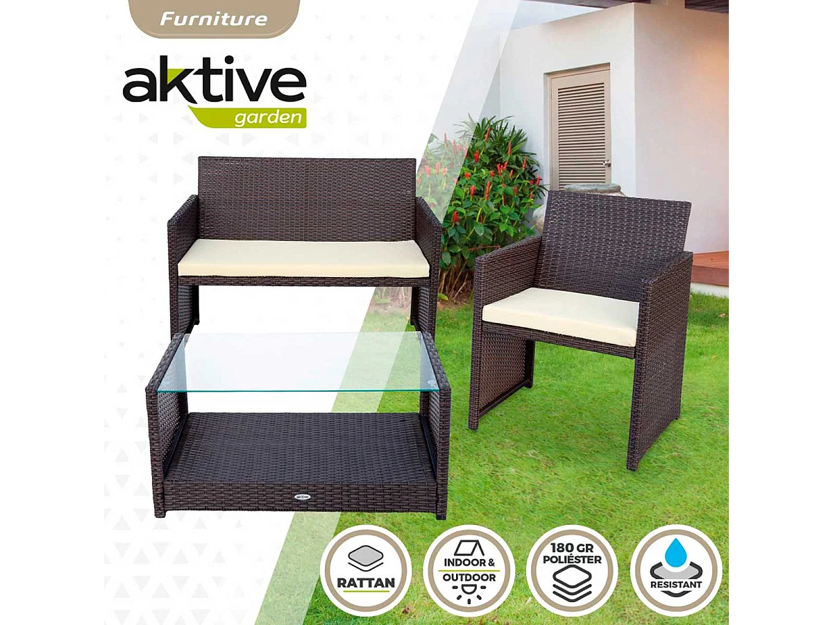Conjunto de jardín Aktive Garden 2 sillones+1 sofá+ 1 mesa negro/crema
