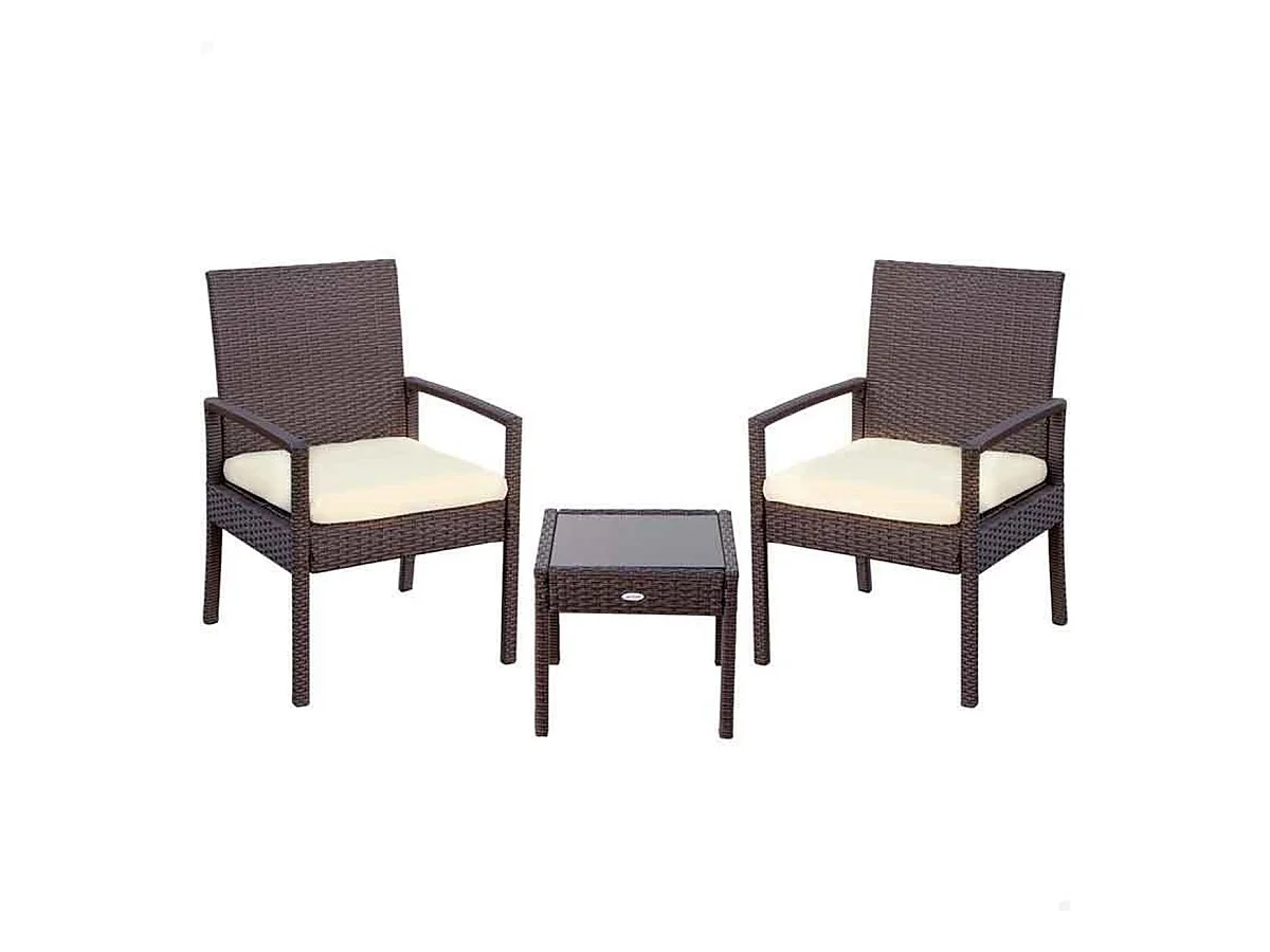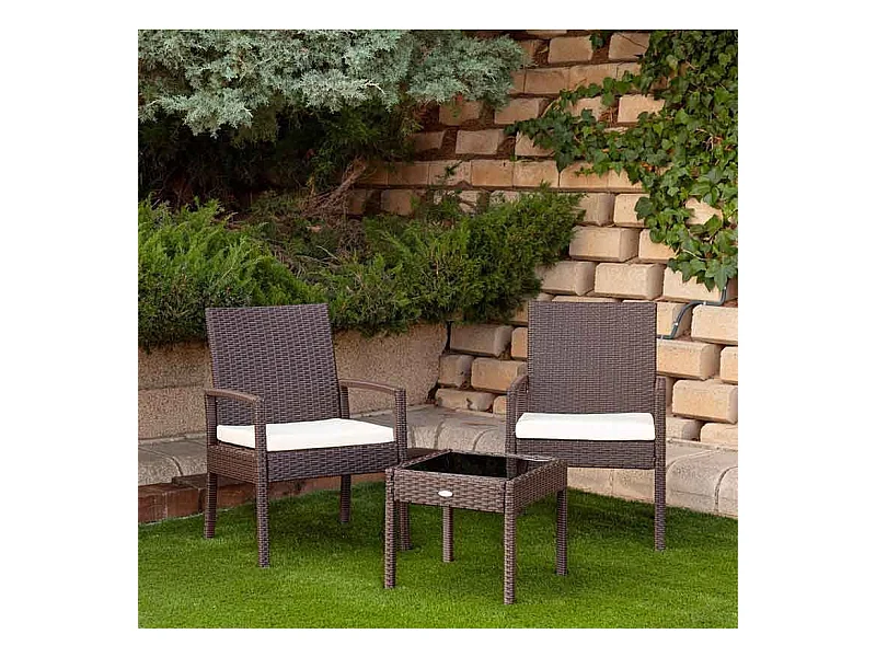 Conjunto de jardín Mykonos 2 sillones + 1 sofá doble + mesa de centro marrón/negro