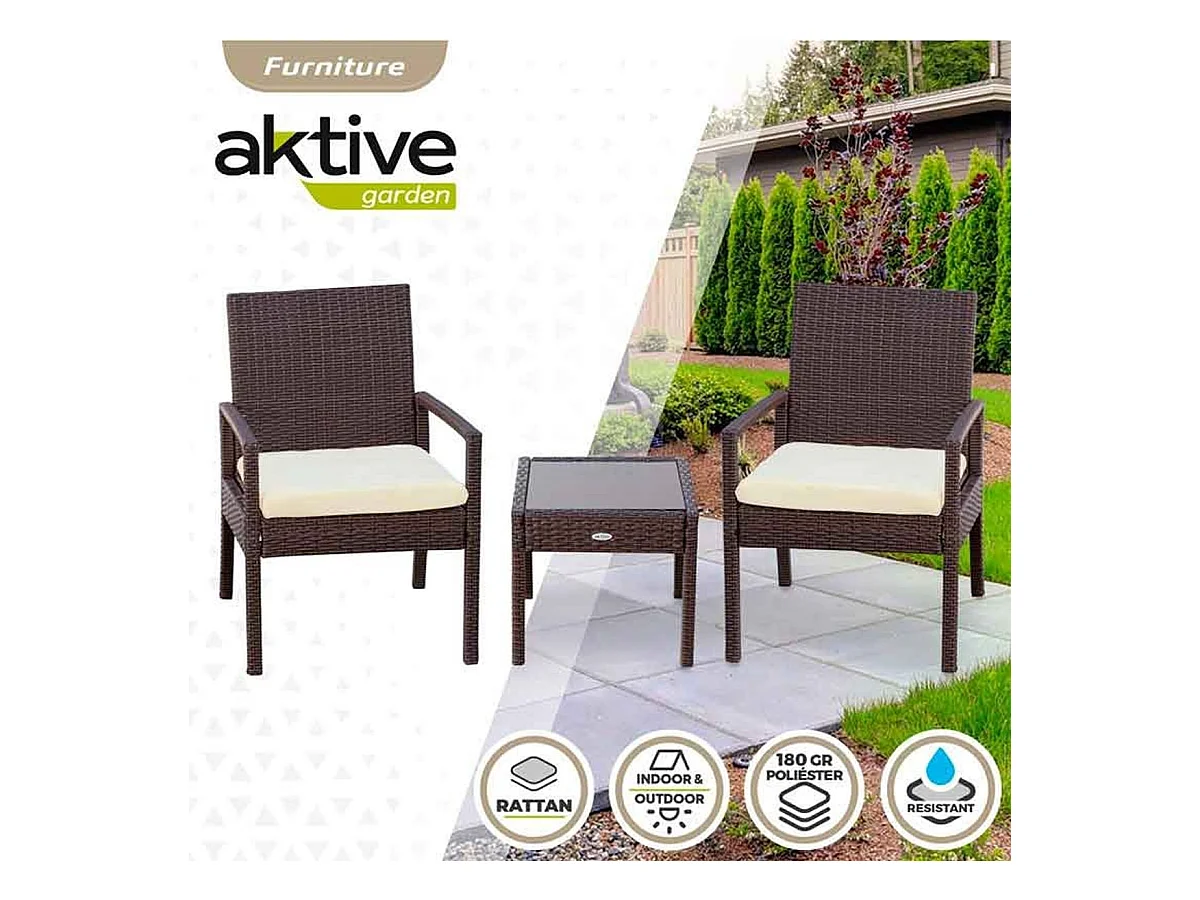 Conjunto de jardín Aktive Garden 2 sillones con cojín+mesita ratán sintético negro