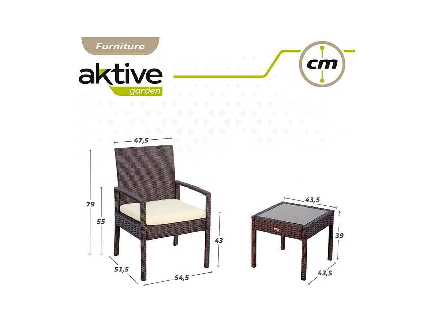 Conjunto de jardín Aktive Garden 2 sillones+1 sofá+ 1 mesa negro/crema