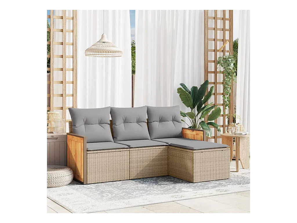 Conjunto de jardín con cojines 4 pzas ratán sintético beige ES103556