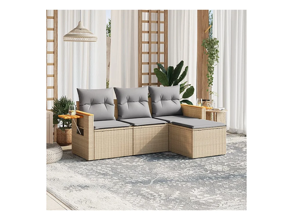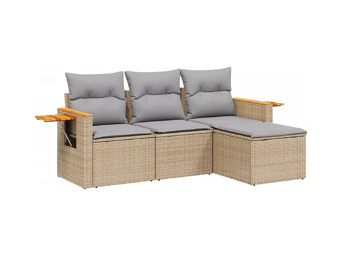 Conjunto de jardín con cojines 4 pzas ratán sintético beige ES520185