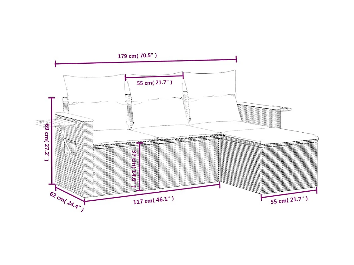 Conjunto de jardín con cojines 4 pzas ratán sintético beige ES202369