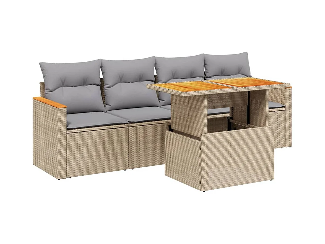 Conjunto de jardín con cojines 5 pzas ratán sintético beige ES760515