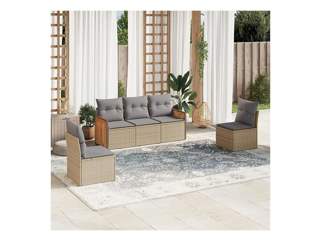 Conjunto de jardín con cojines 5 pzas ratán sintético beige ES895448