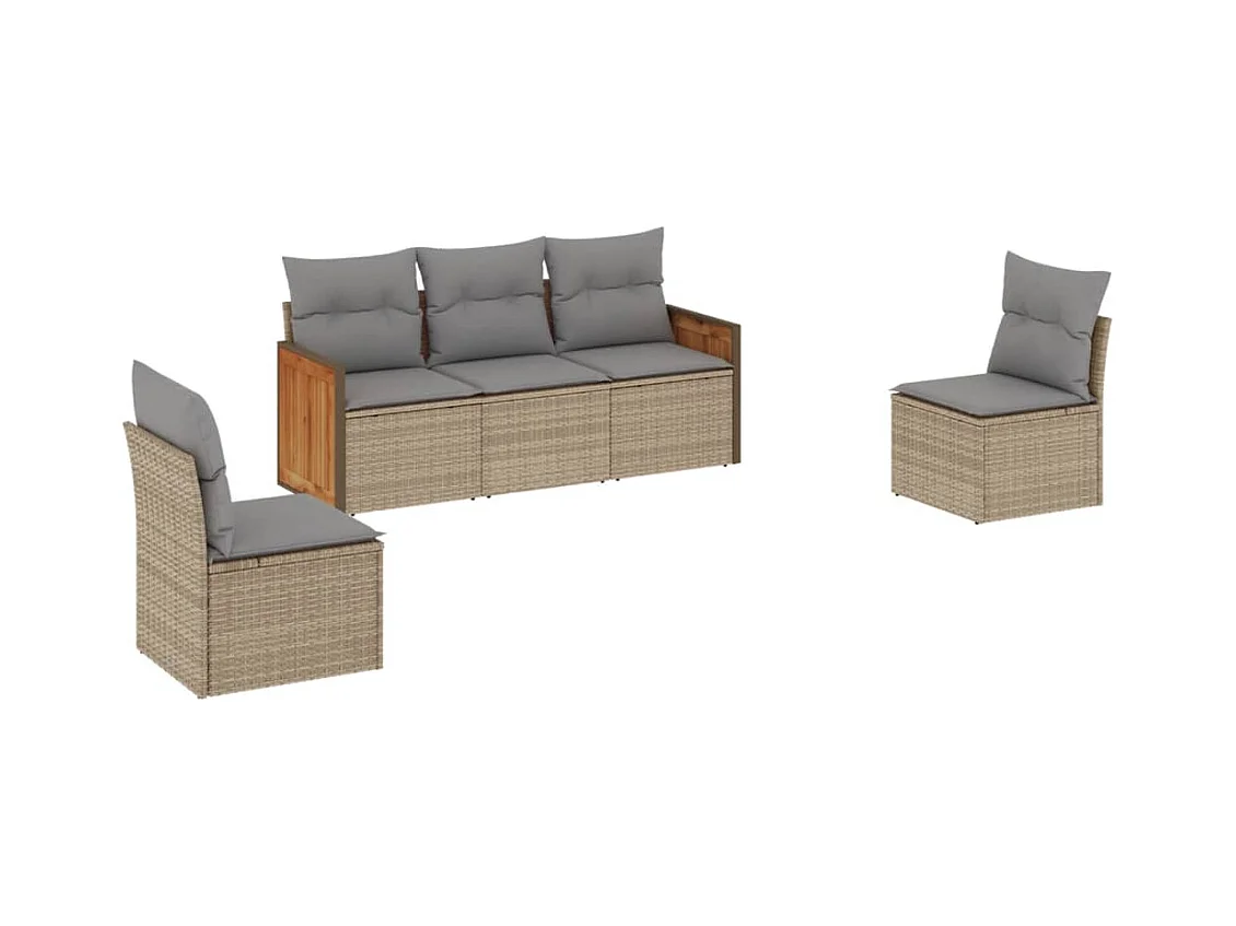 Conjunto de jardín con cojines 5 pzas ratán sintético beige ES182227