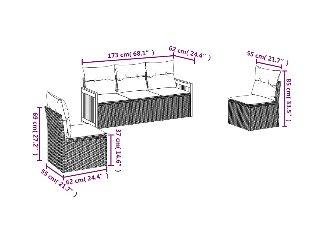4 pzas Salón de jardín con cojines ratán sintético beige ES33436