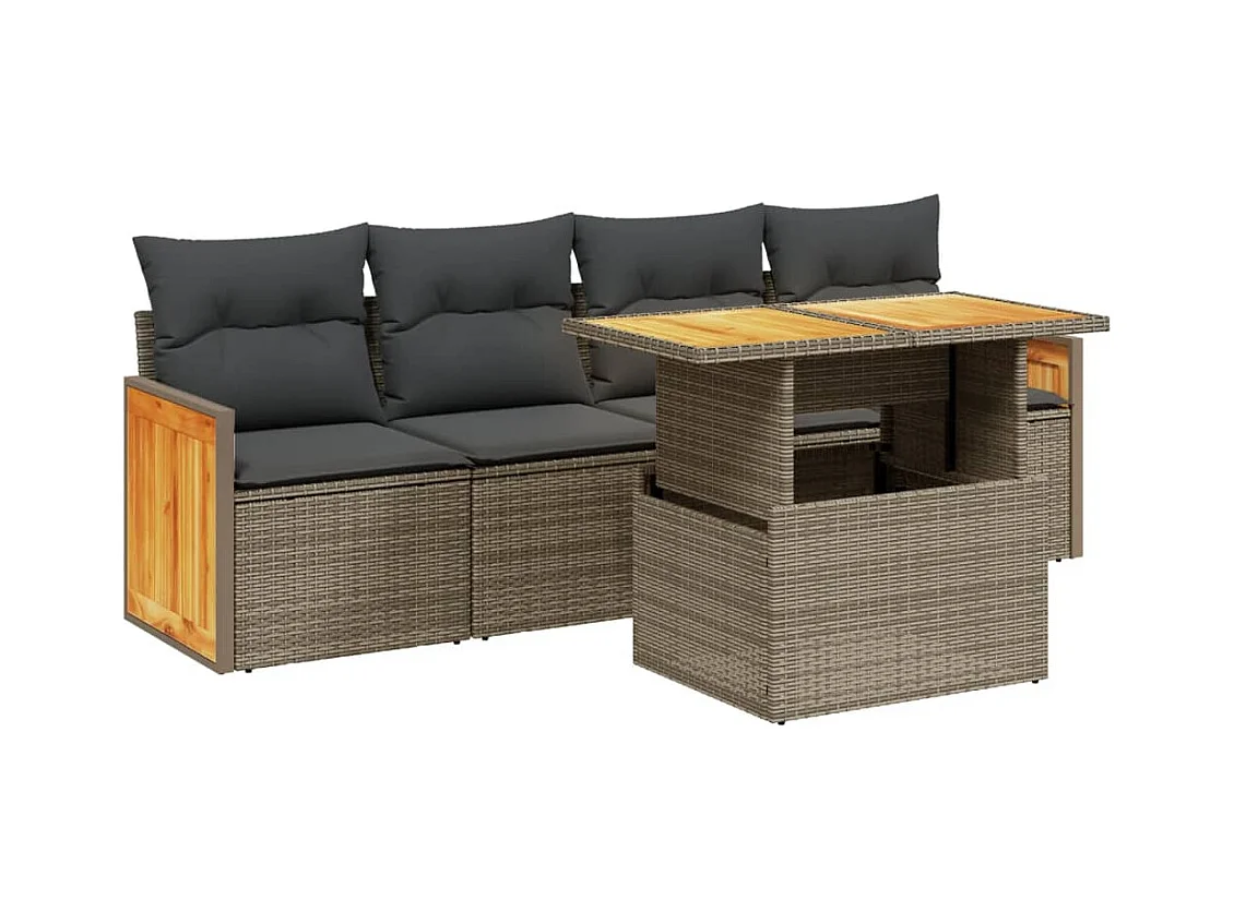 Conjunto de jardín con cojines 5 pzas ratán sintético gris ES922104