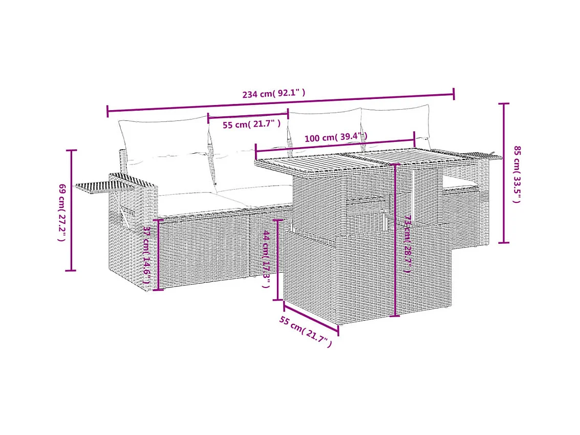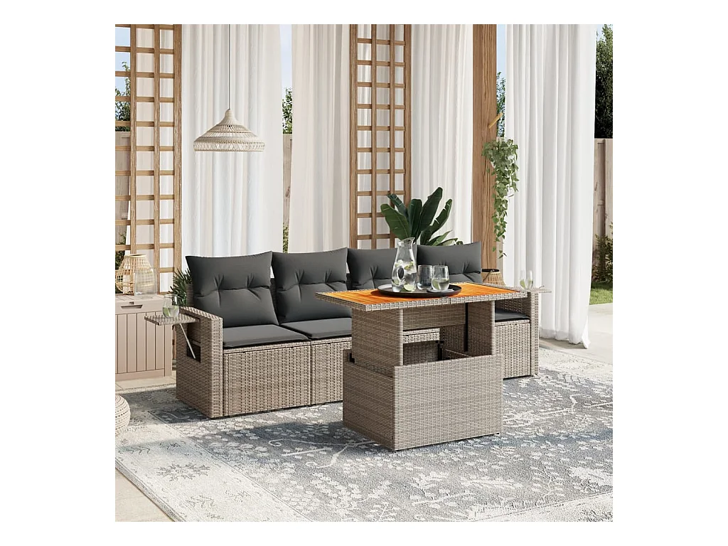 Conjunto de jardín con cojines 5 pzas ratán sintético gris ES290994
