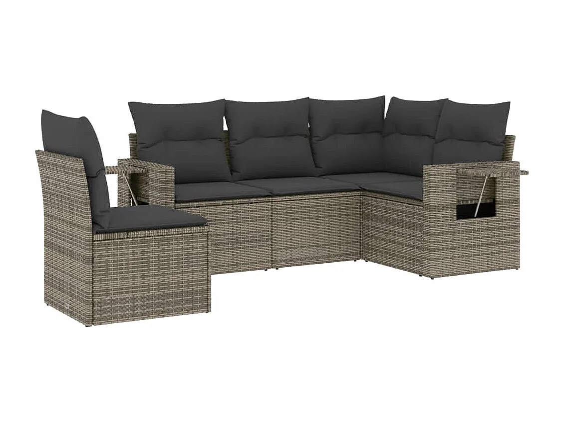 Conjunto de jardín con cojines 5 pzas ratán sintético gris ES418474