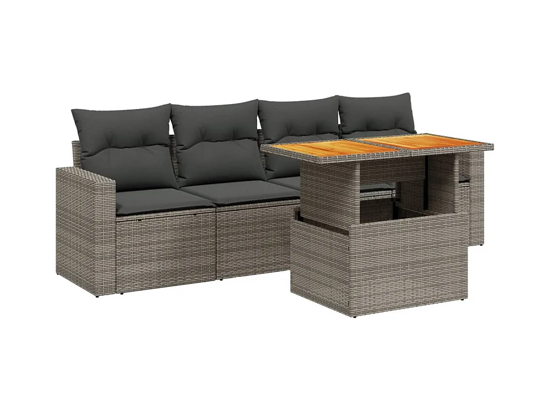 Conjunto de jardín con cojines 5 pzas ratán sintético gris ES352221