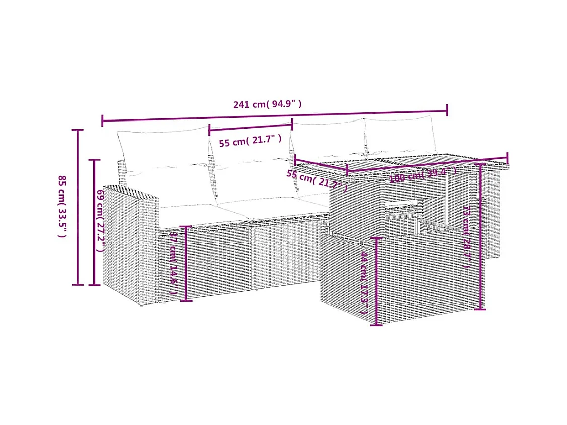 Conjunto de jardín con cojines 5 pzas ratán sintético gris ES969468