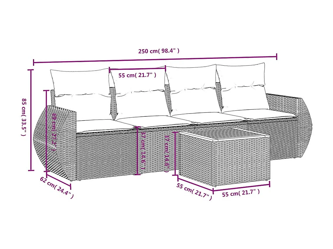 Conjunto de jardín - sofá 2+1+1 plazas