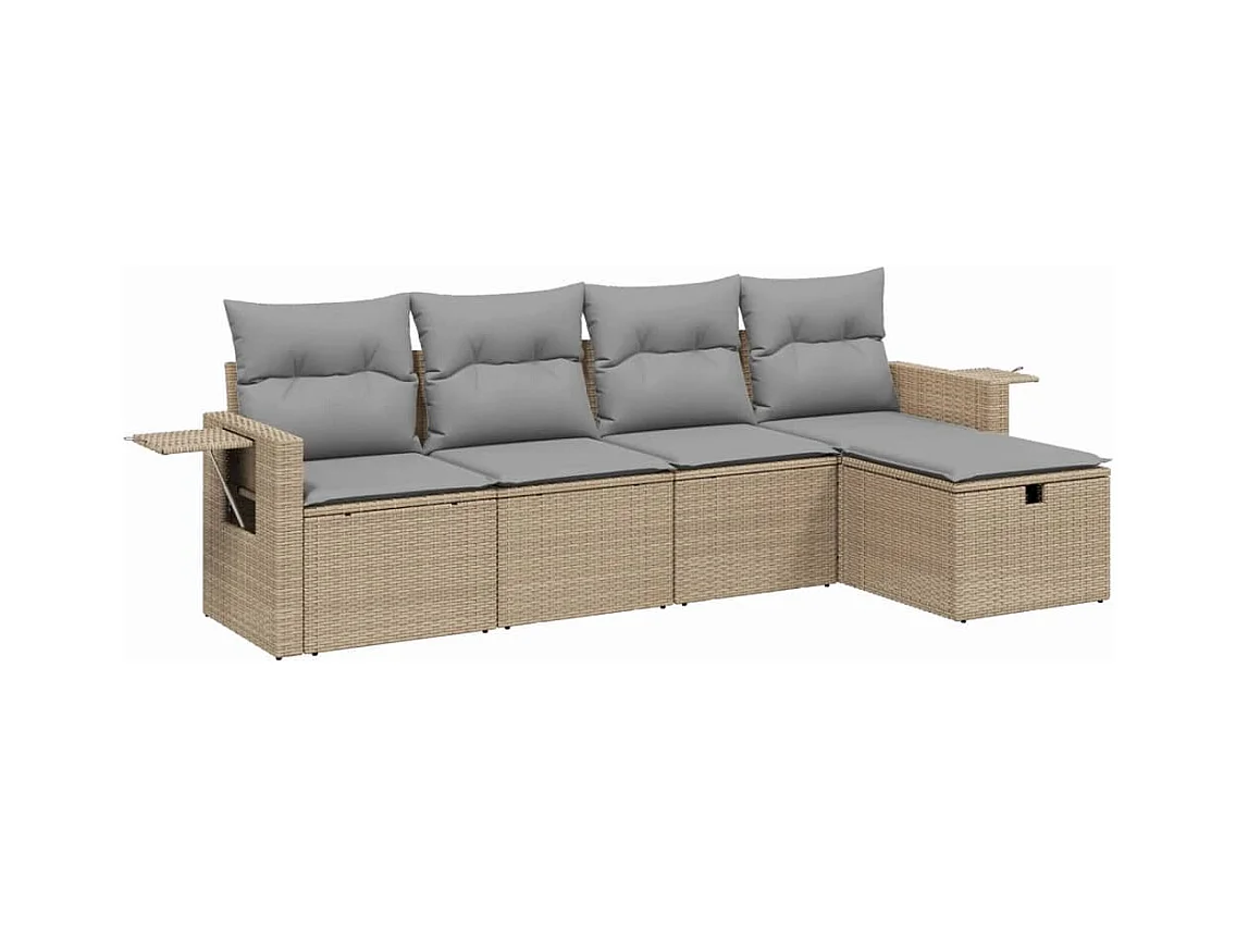 Conjunto de jardín con cojines 5 pzas ratán sintético beige ES182227