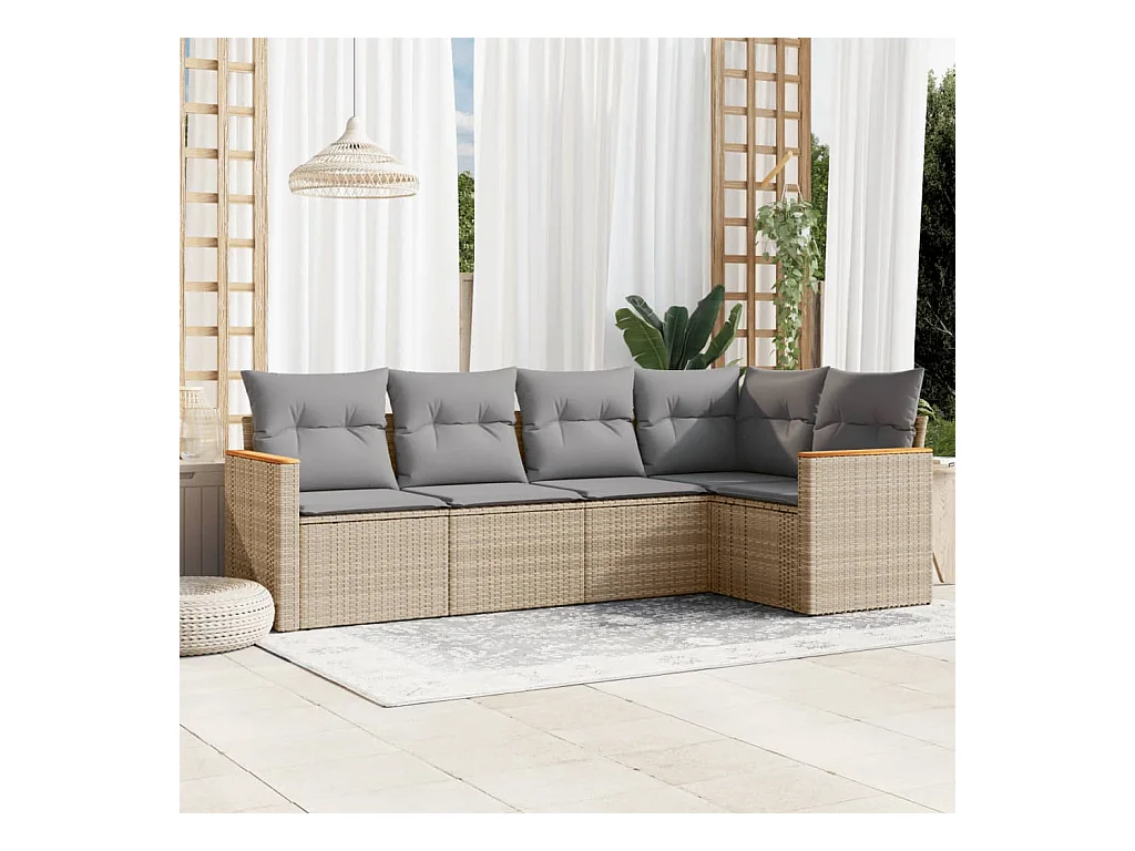 Conjunto de jardín con cojines 5 pzas ratán sintético beige ES363614