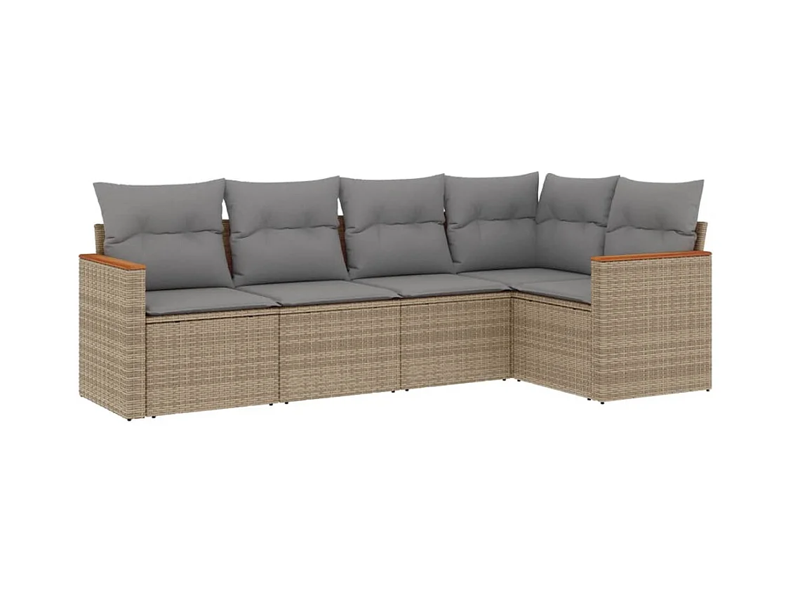 Conjunto de jardín con cojines 5 pzas ratán sintético beige ES760515
