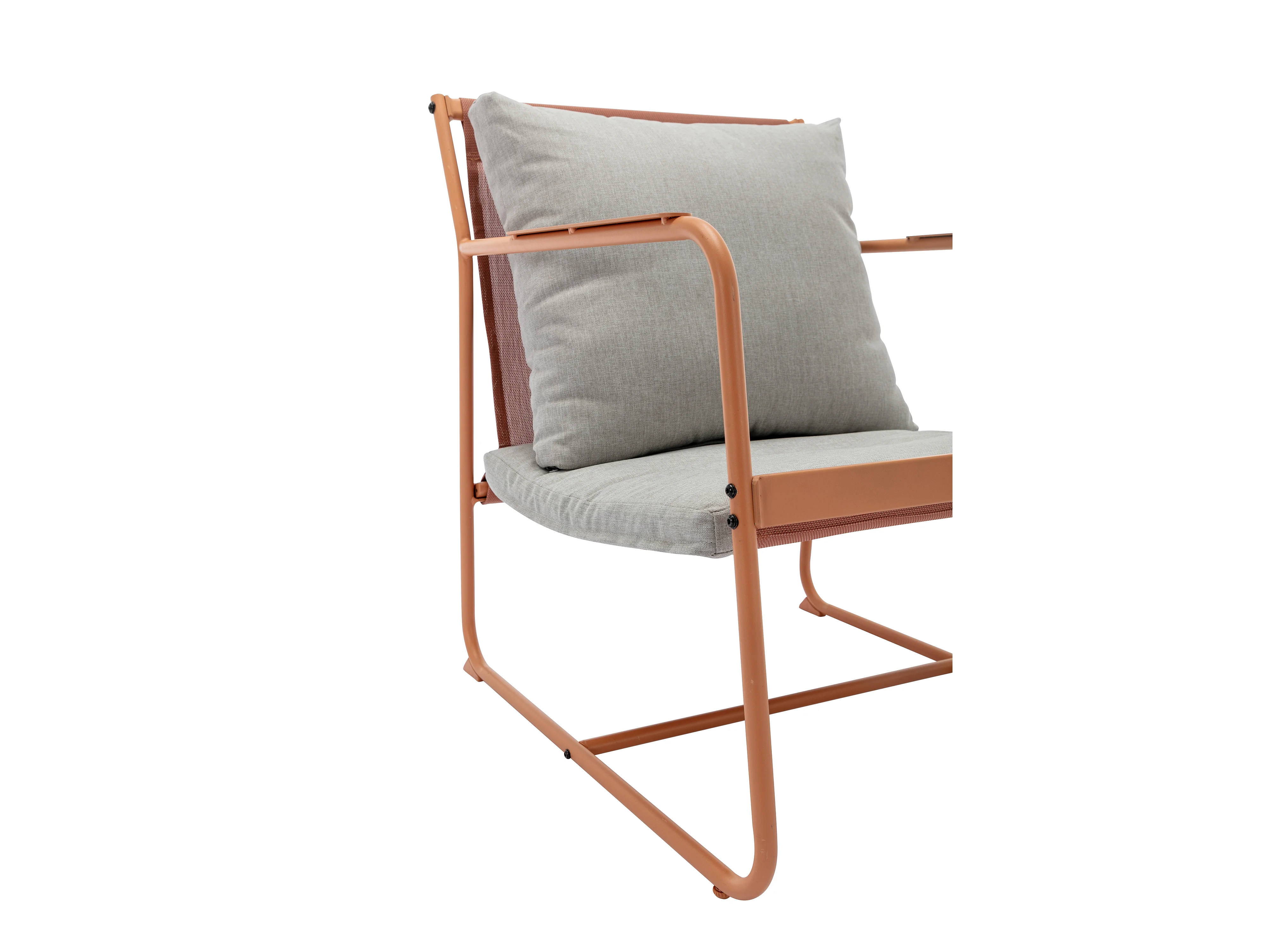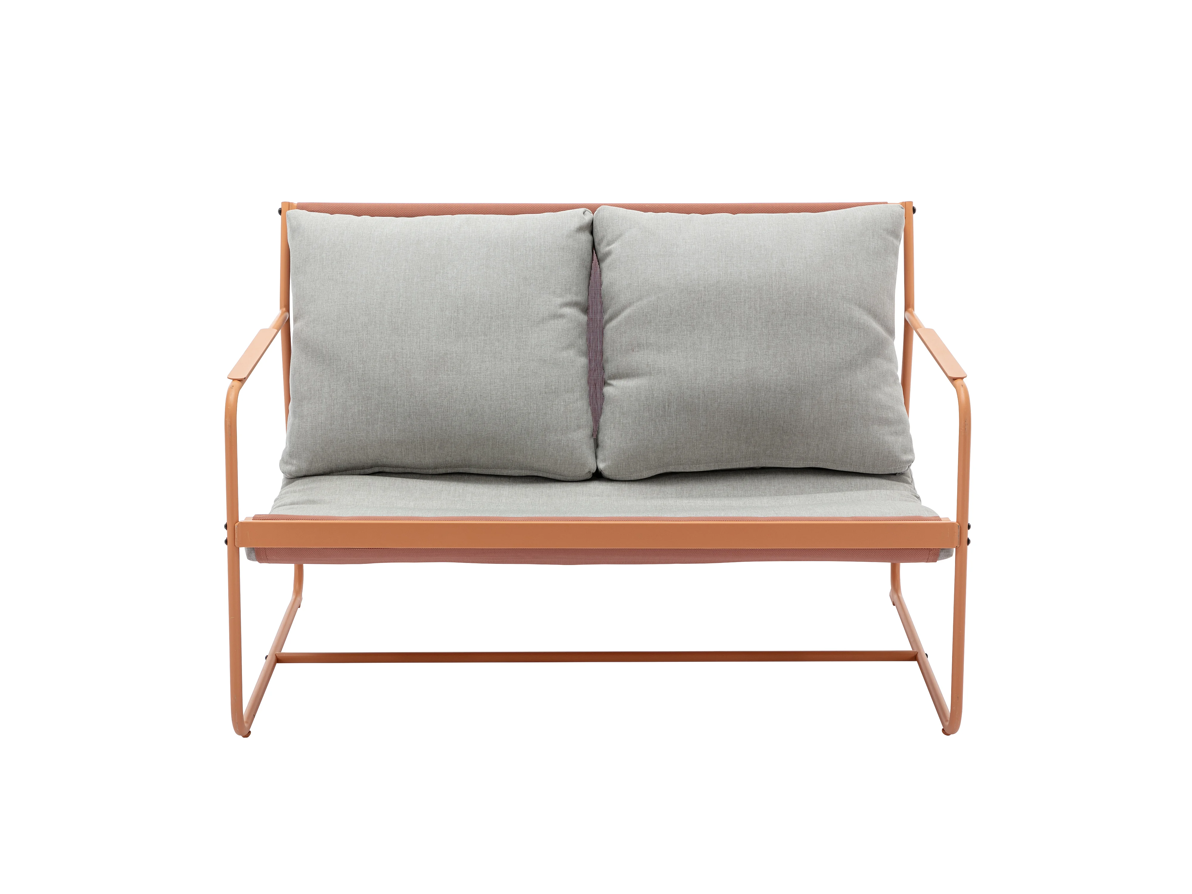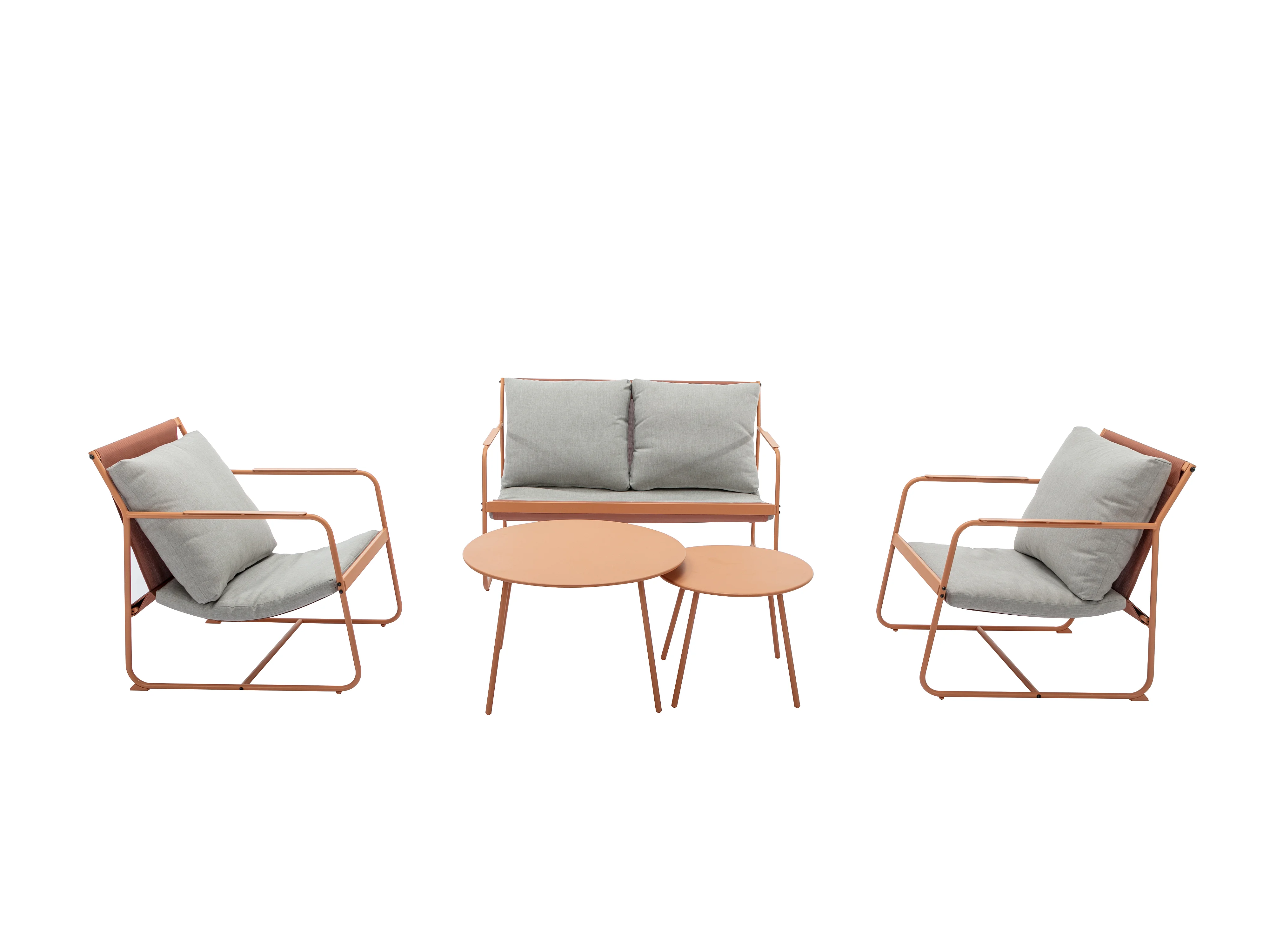 Conjunto de jardín de acero: 1 sofá de 2 plazas, 2 sillones y 2 mesas bajas - Naranja y cojines grises - LASIMO de MYLIA