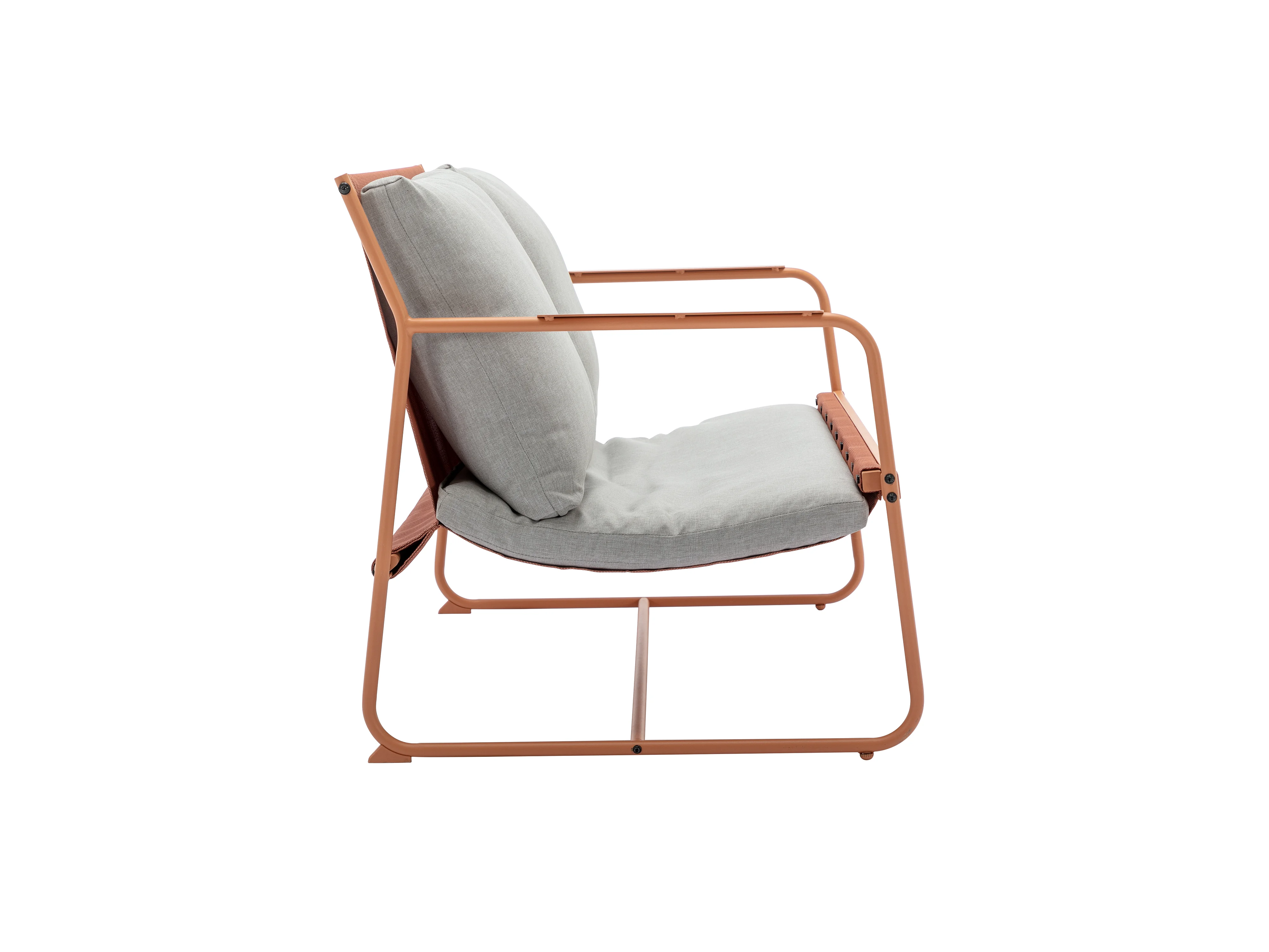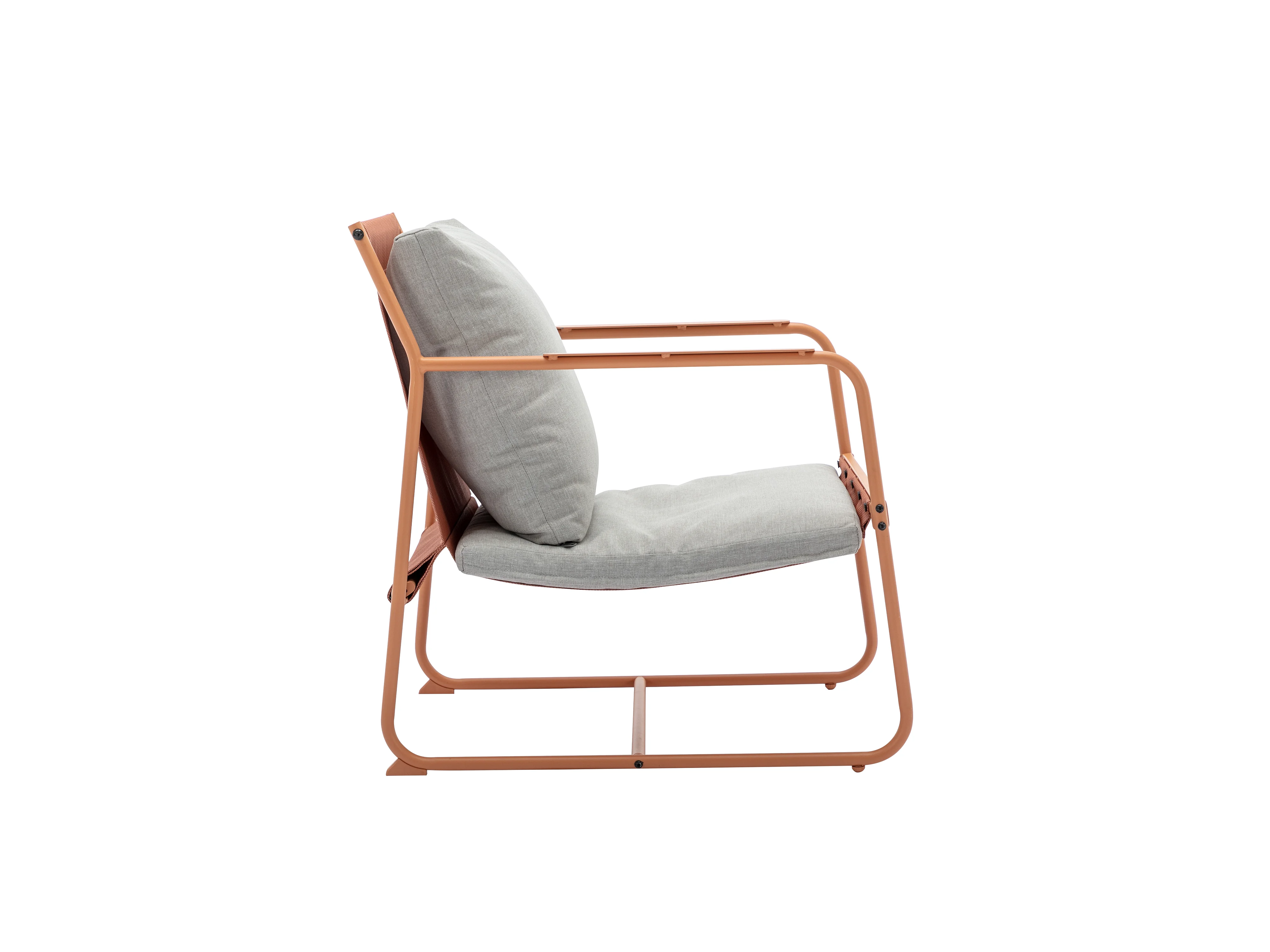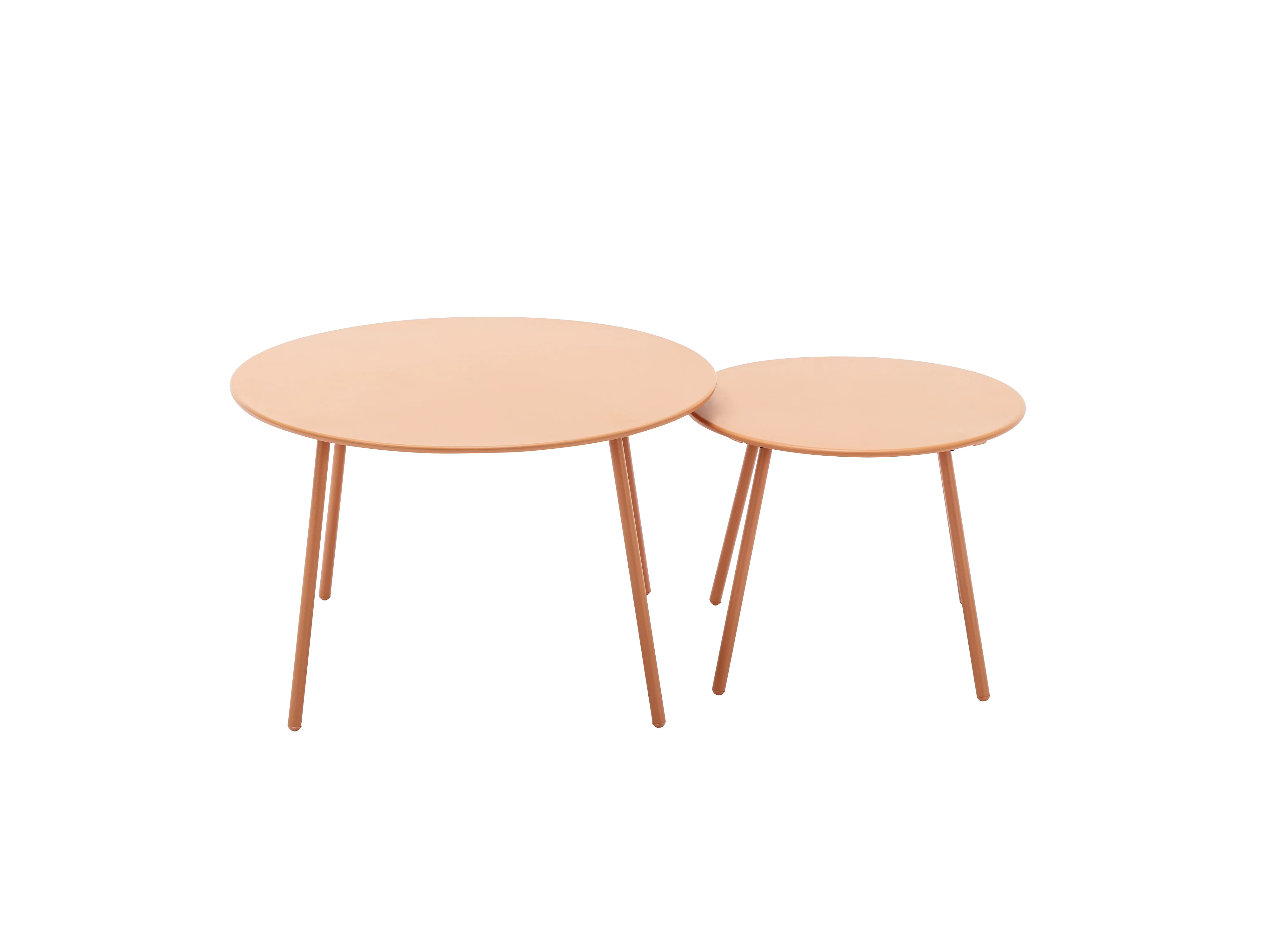 Conjunto de jardín de acero: 1 sofá de 2 plazas, 2 sillones y 2 mesas bajas - Naranja y cojines grises - LASIMO de MYLIA