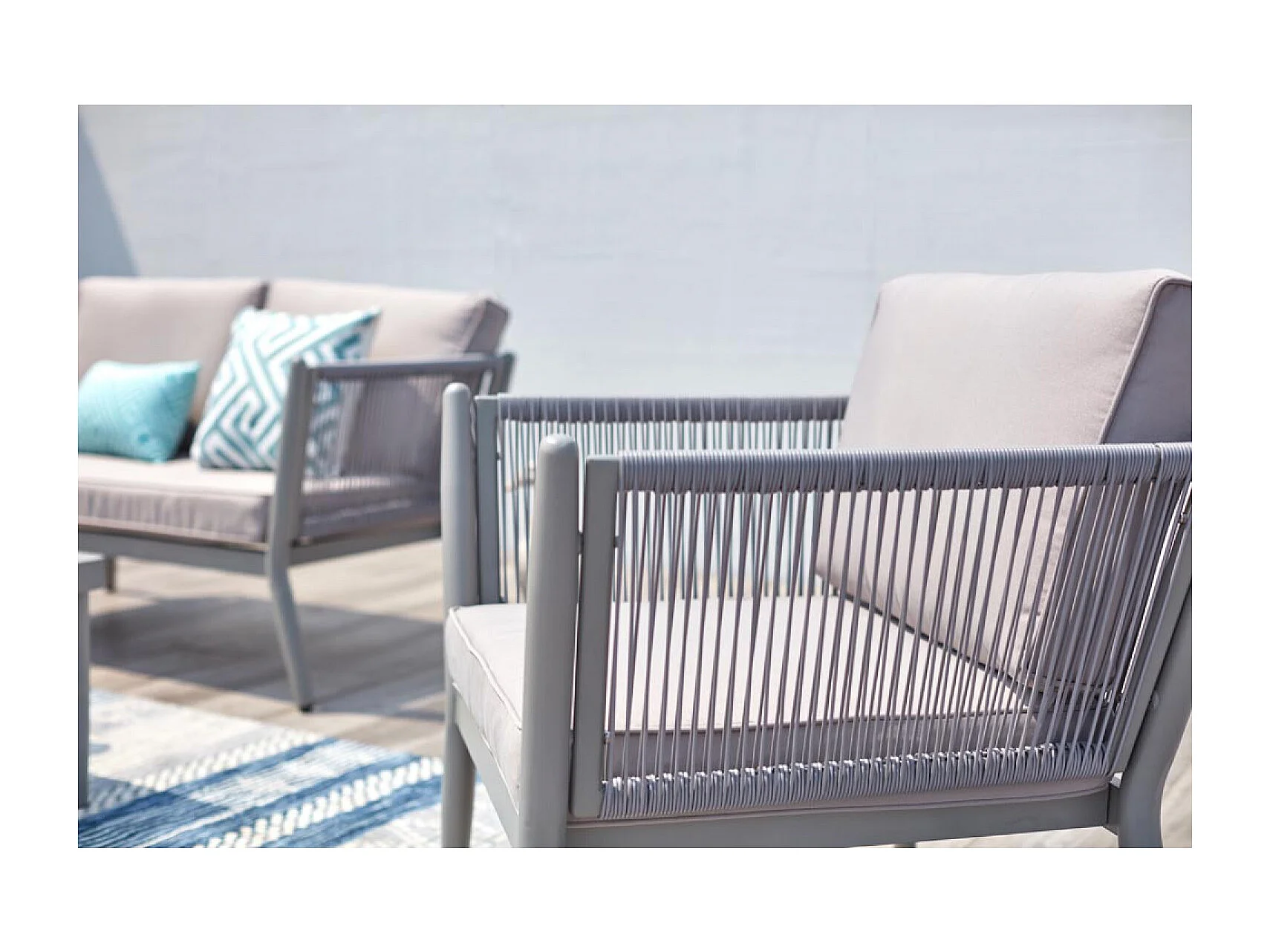 Conjunto de jardín 4 plazas de aluminio y cuerda gris claro ANAHMA