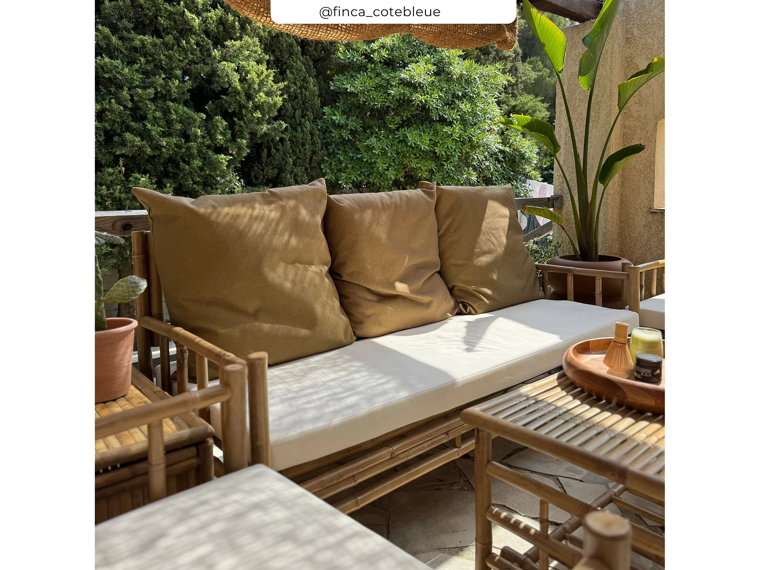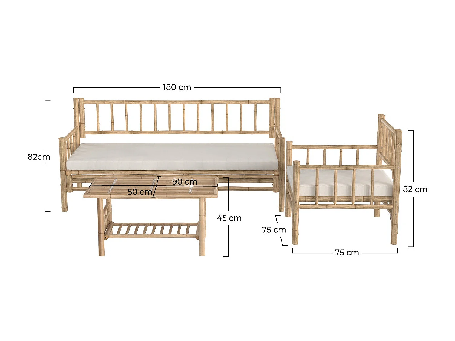 Conjunto de jardín de bambú con sofá, sillón y mesa de centro - Vadella