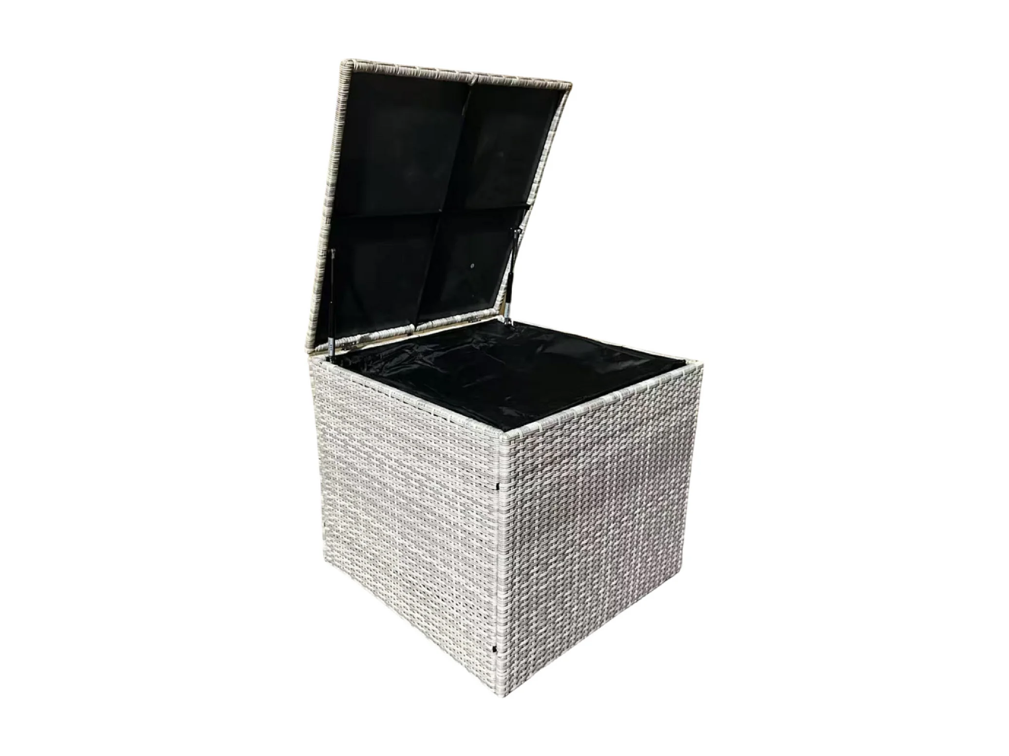Conjunto de jardín de esquina 4 plazas de ratán sintético gris con baúl de almacenamiento y mesa de centro