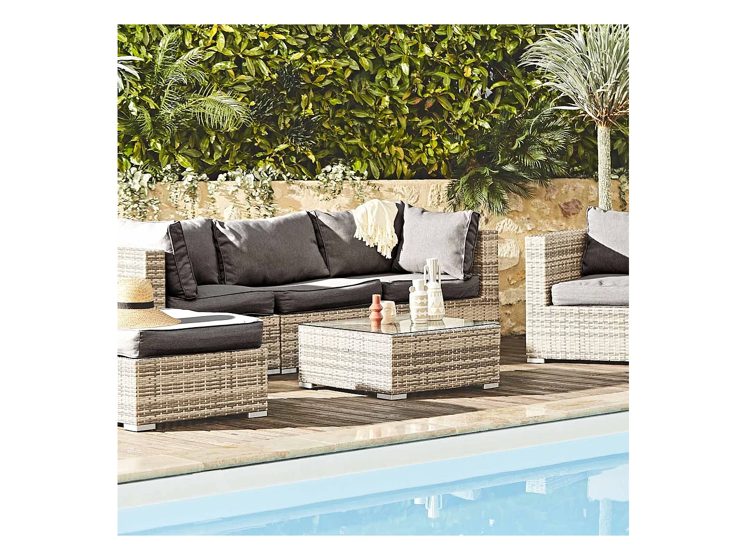 Conjunto de muebles de jardín en resina trenzada, 5 plazas varios