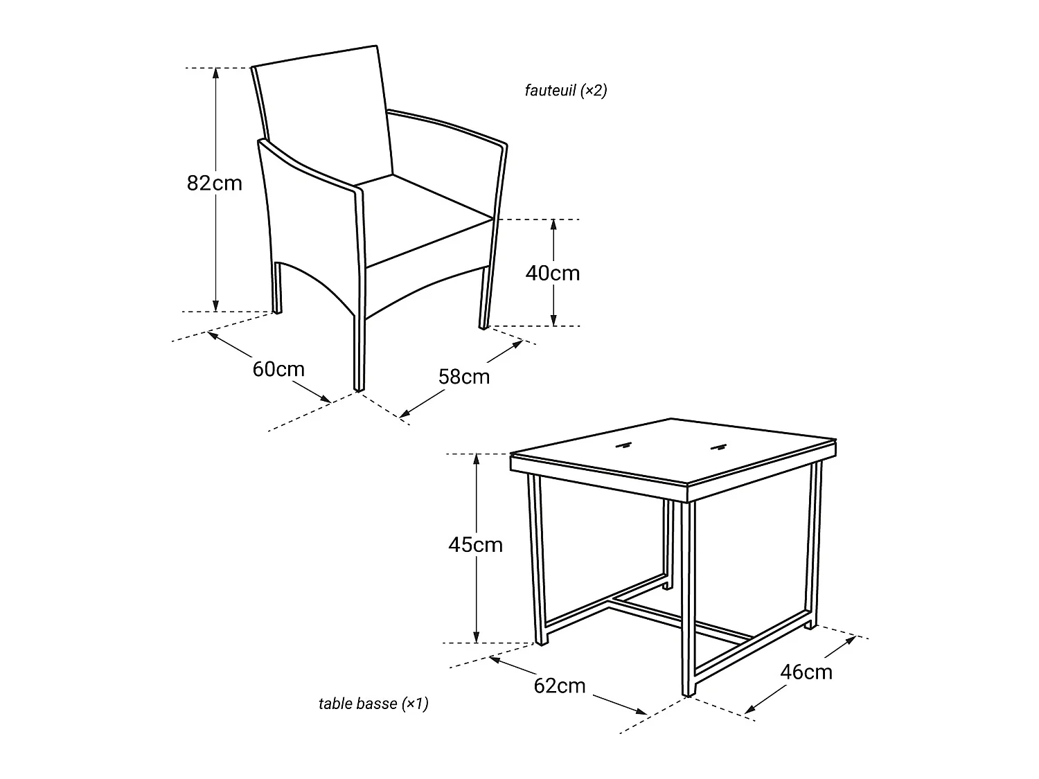 Conjunto de muebles bajos de jardín 2 sillas + 1 mesa CADIX