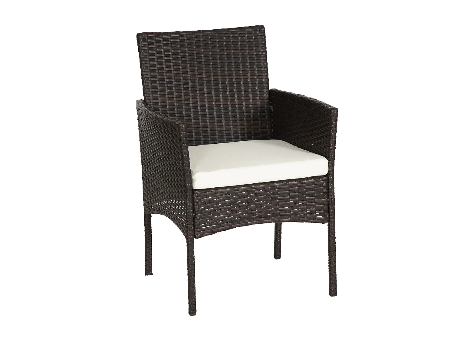 Conjunto de jardín FARO en resina trenzada marrón 2 plazas cojines crema