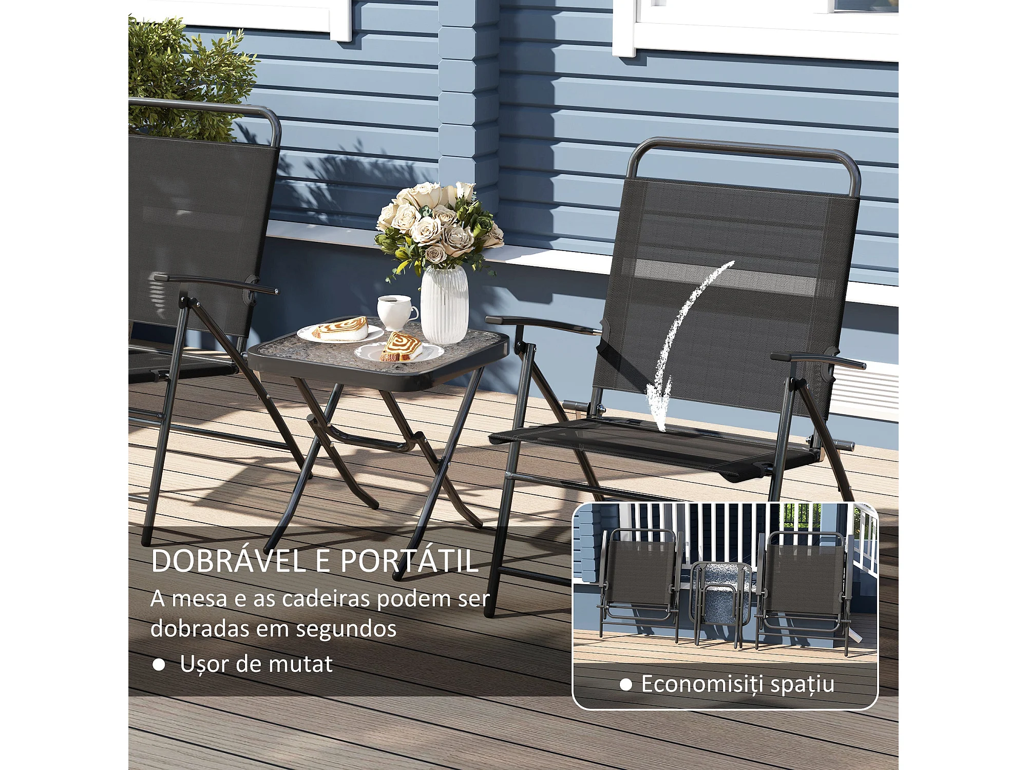 Conjunto de jardín Ghina 2 sillas + mesa negro
