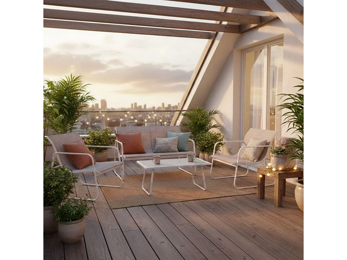 Conjunto de jardín Lazio 4 piezas blanco/natural