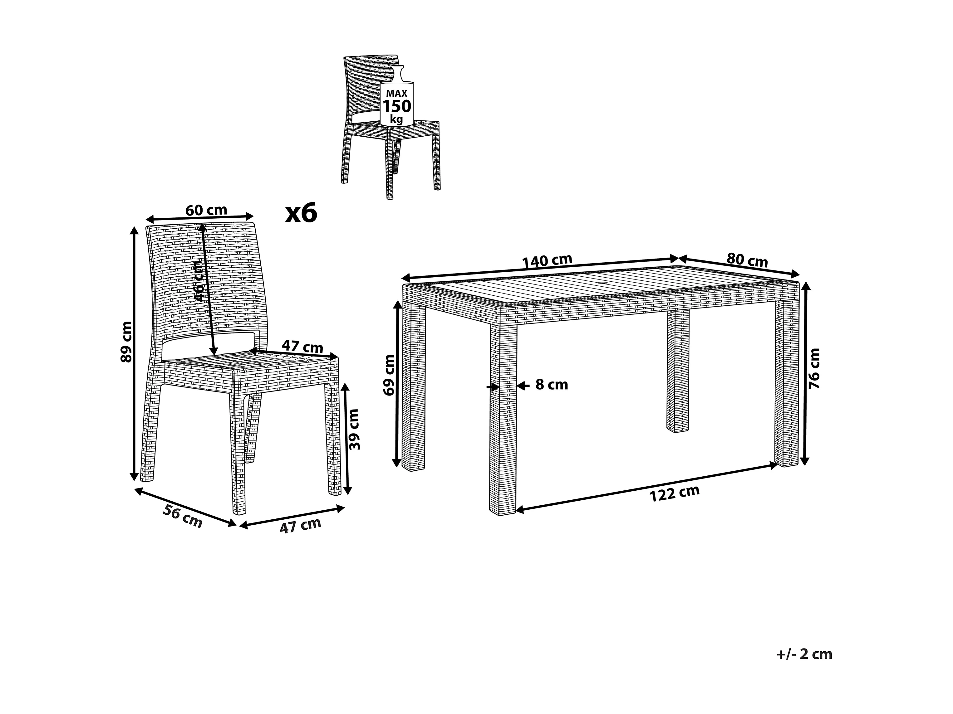Conjunto de comedor exterior 6 plazas FOSSANO Blanco