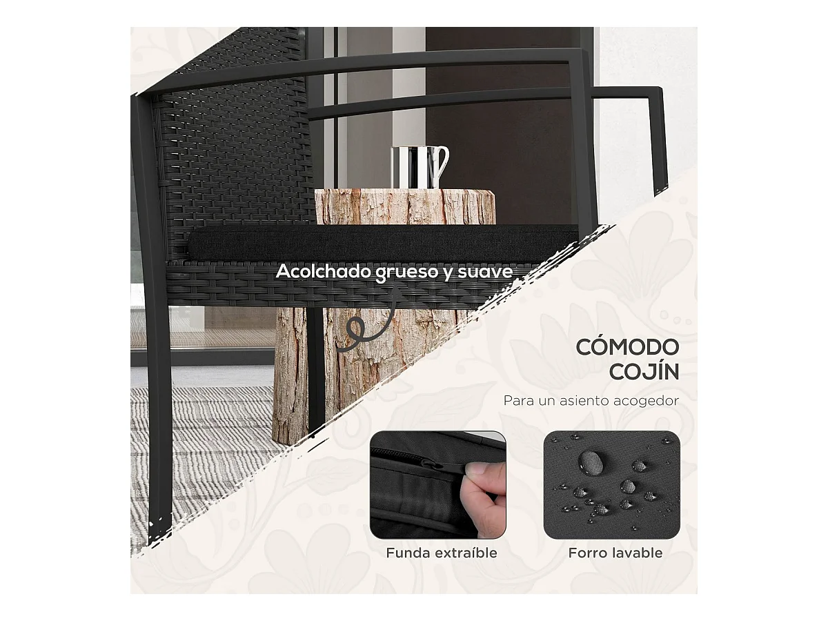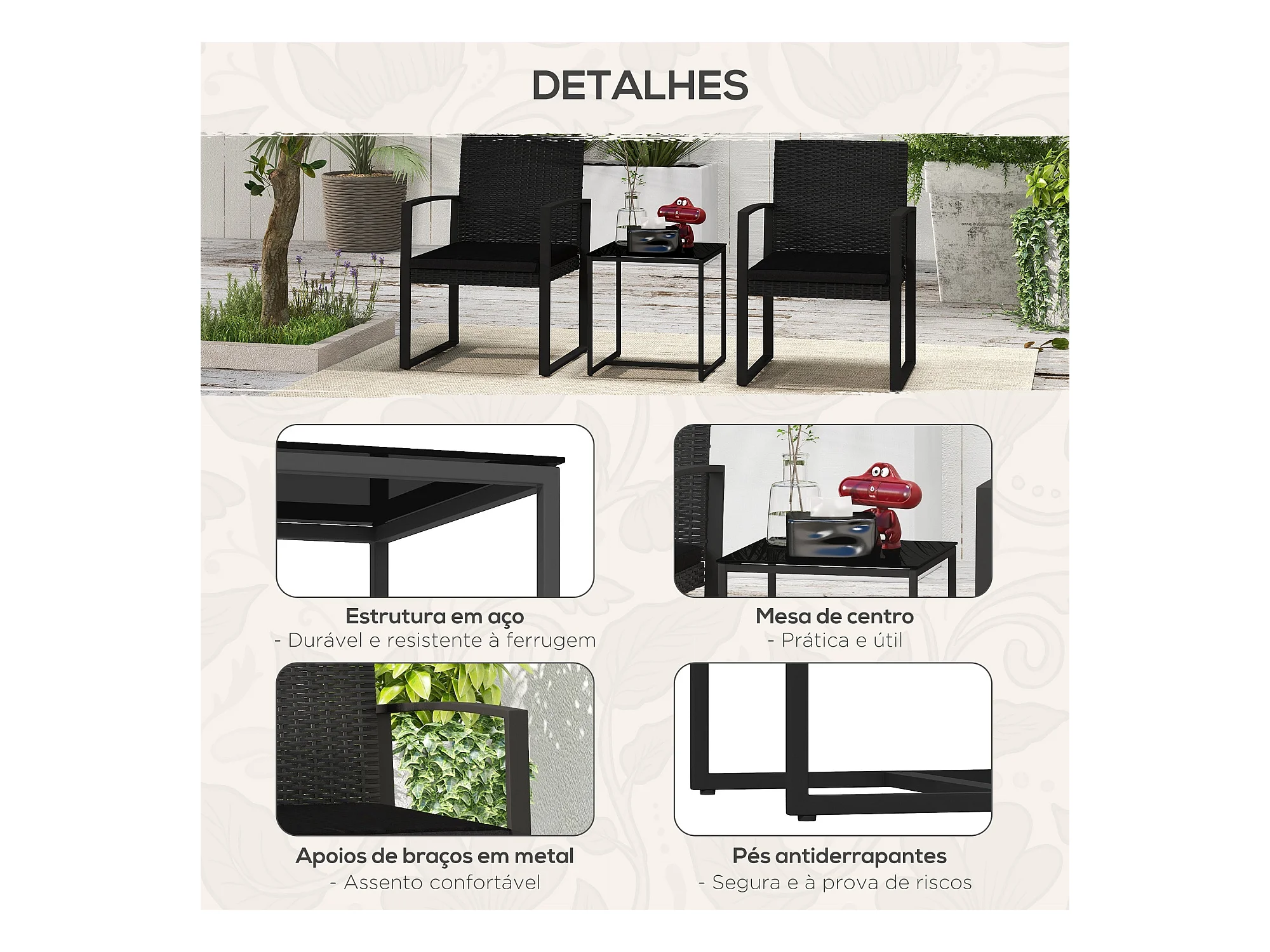 Conjunto de jardín Mole Outsunny 2 sillas + mesa negro