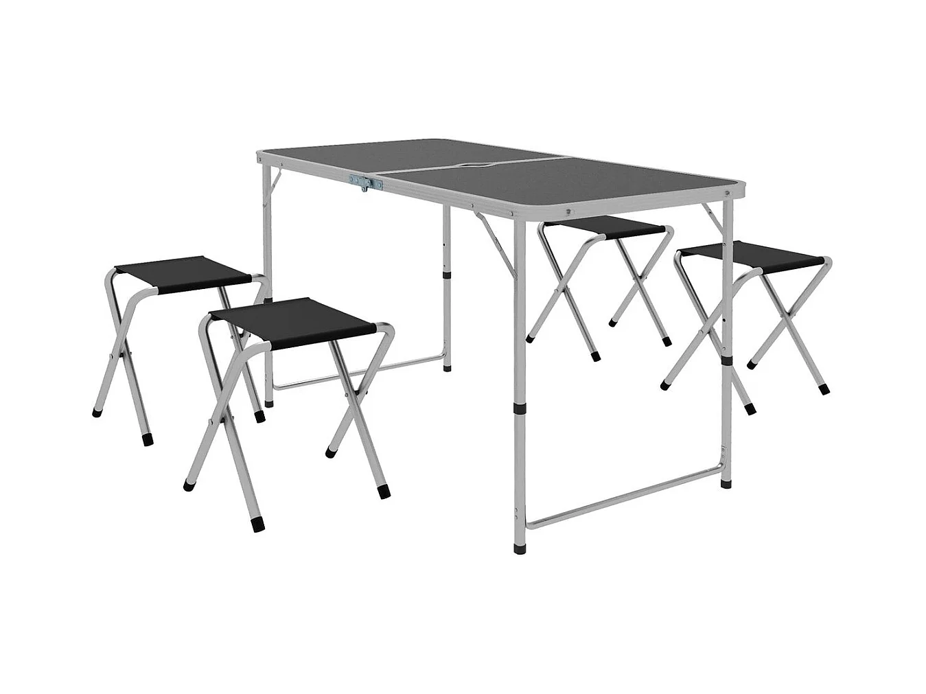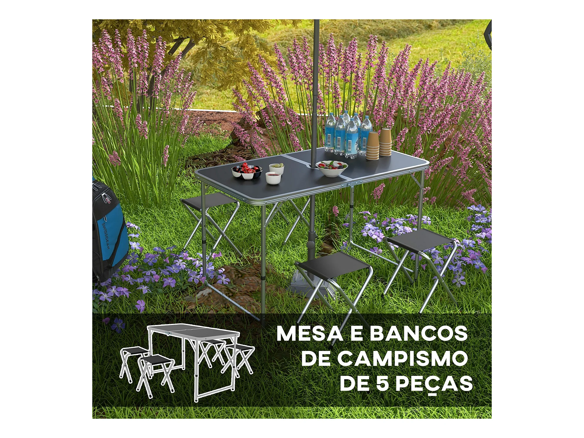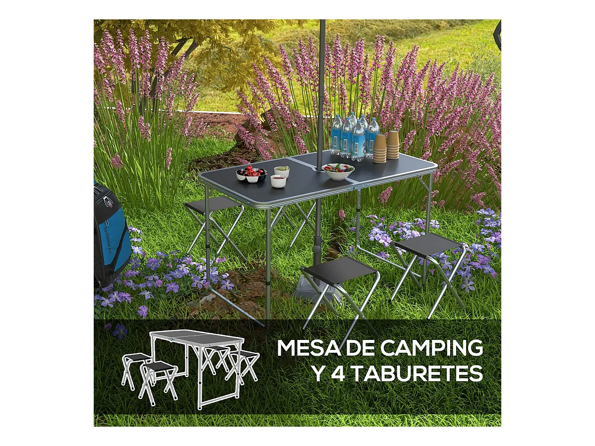 Conjunto de jardín Primrose Outsunny mesa + 4 taburetes plegables gris