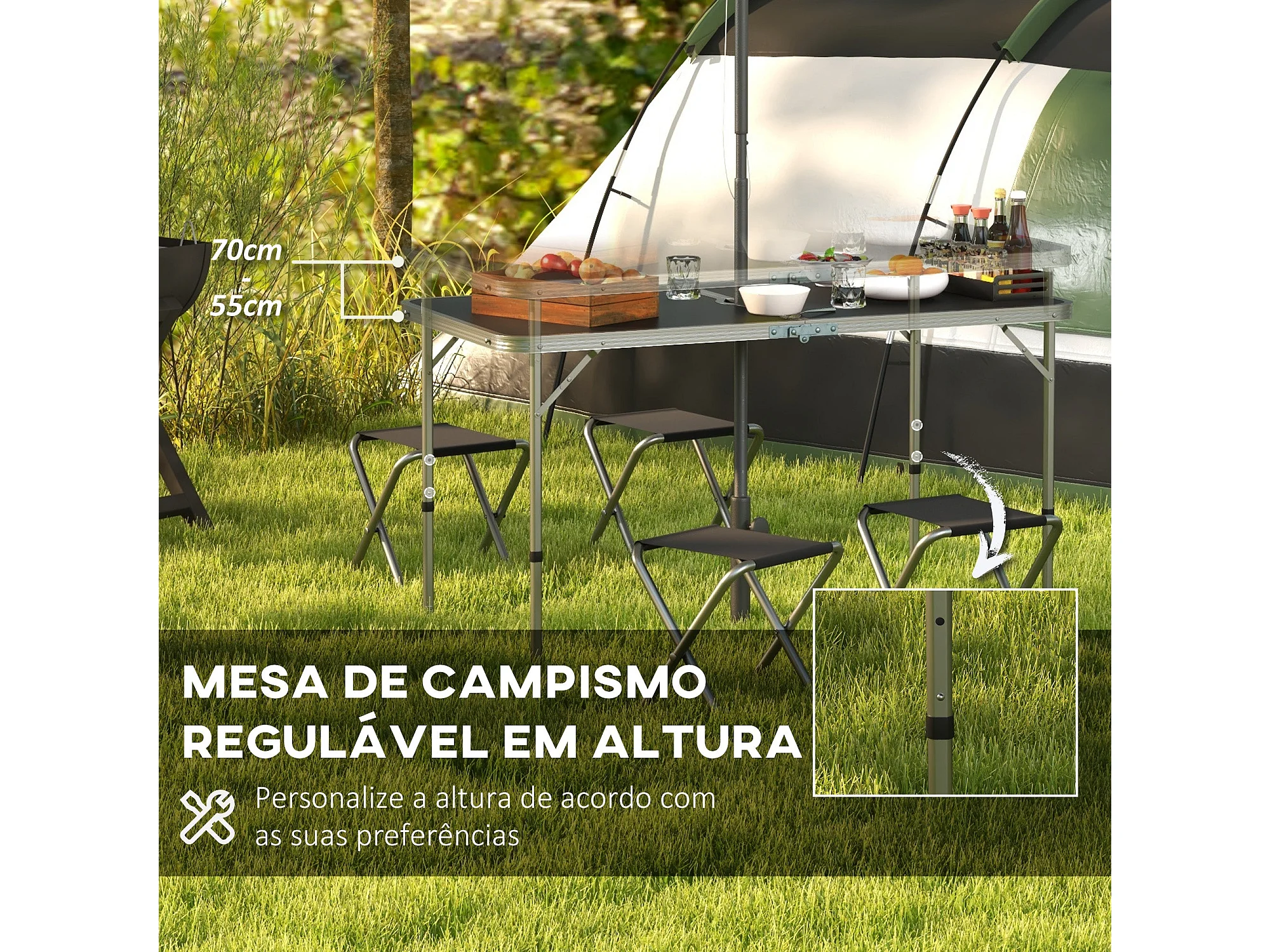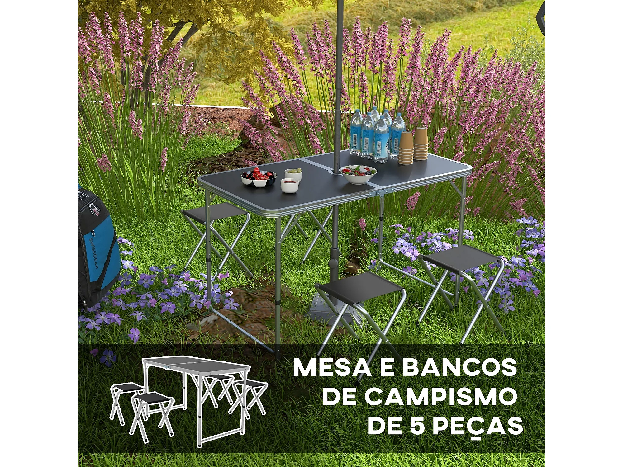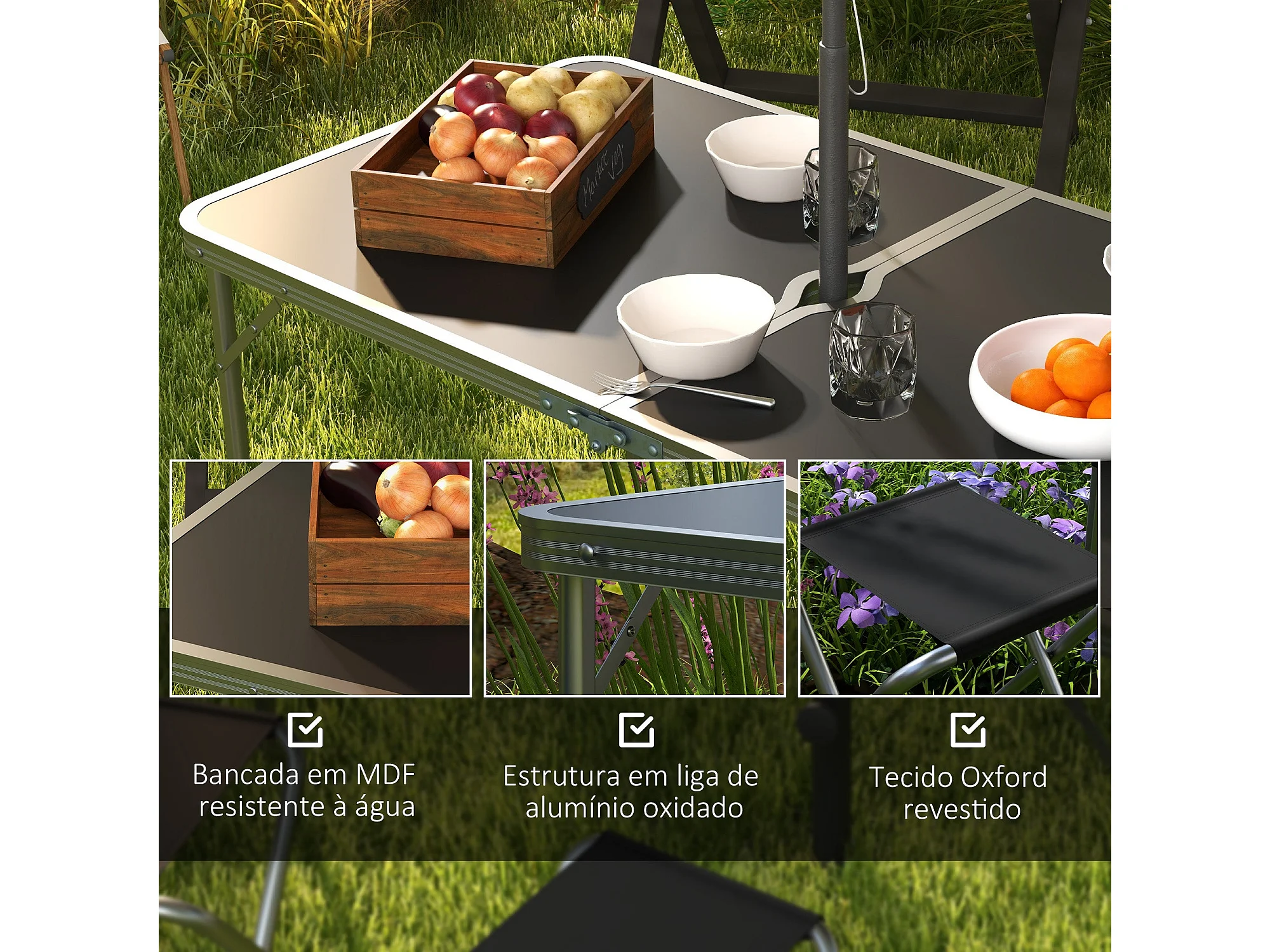 Conjunto de jardín Primrose Outsunny mesa + 4 taburetes plegables gris