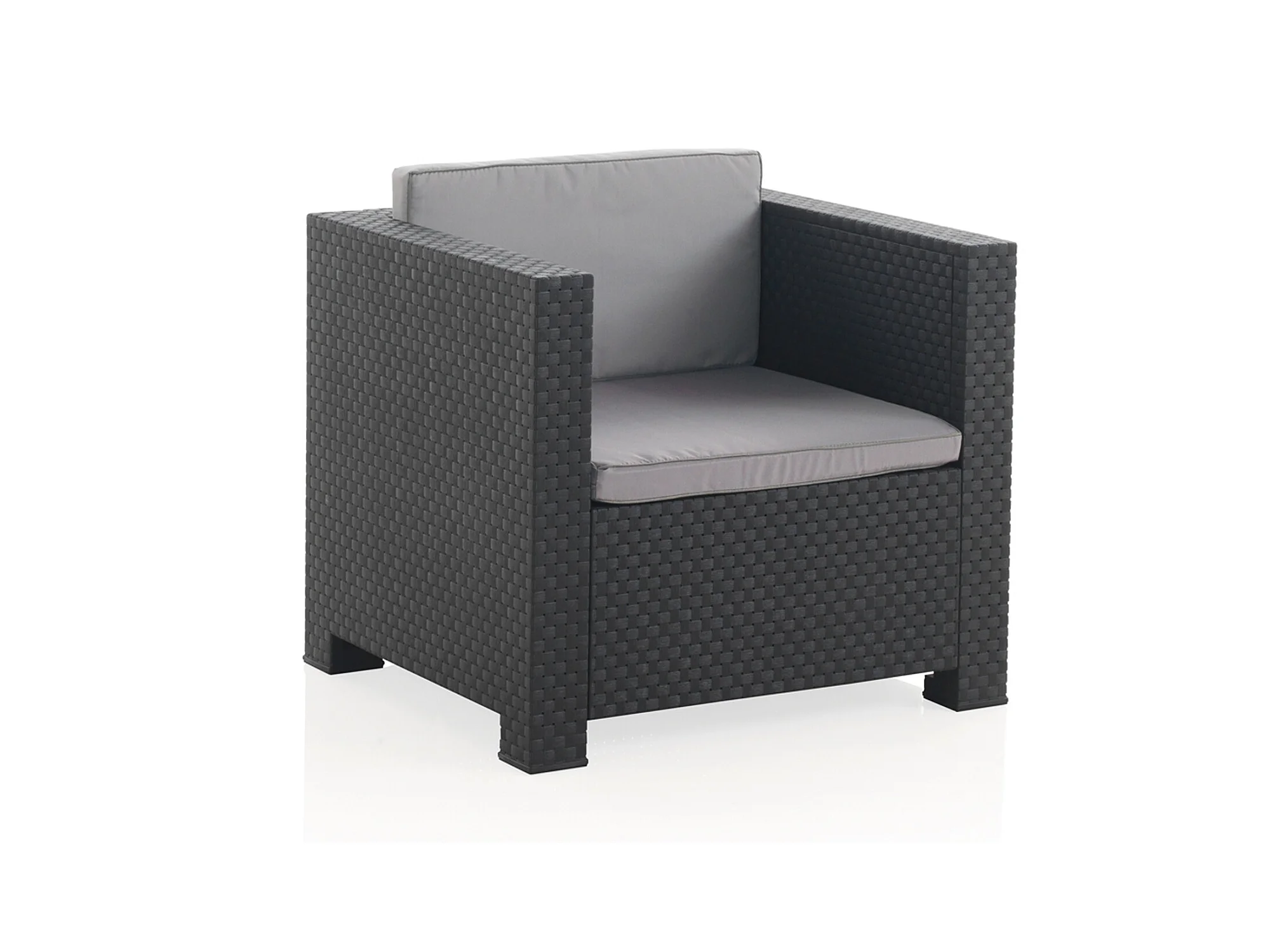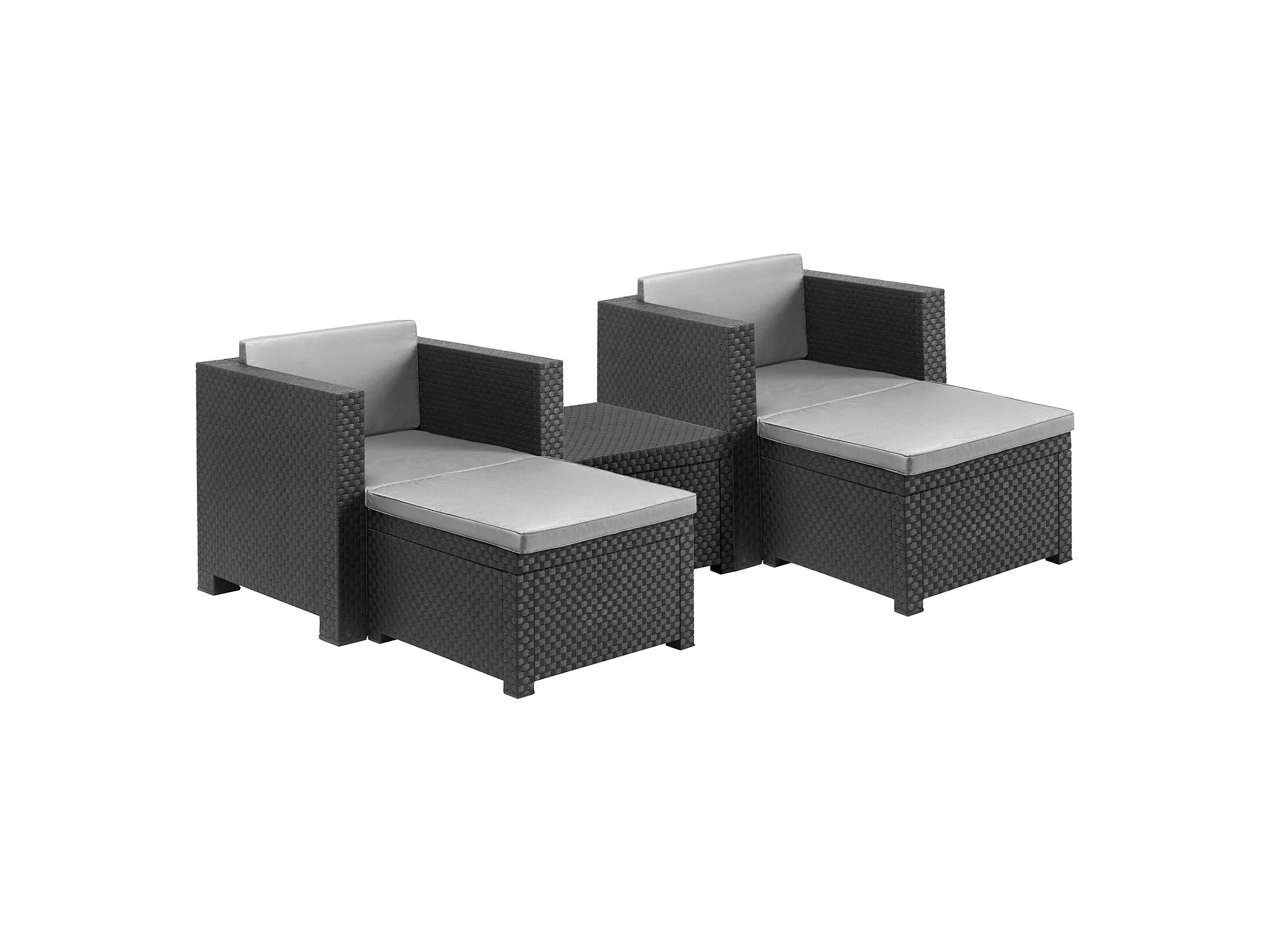 Conjunto de jardín Sira 2 sillones + 2 puffs + 1 mesa grafito