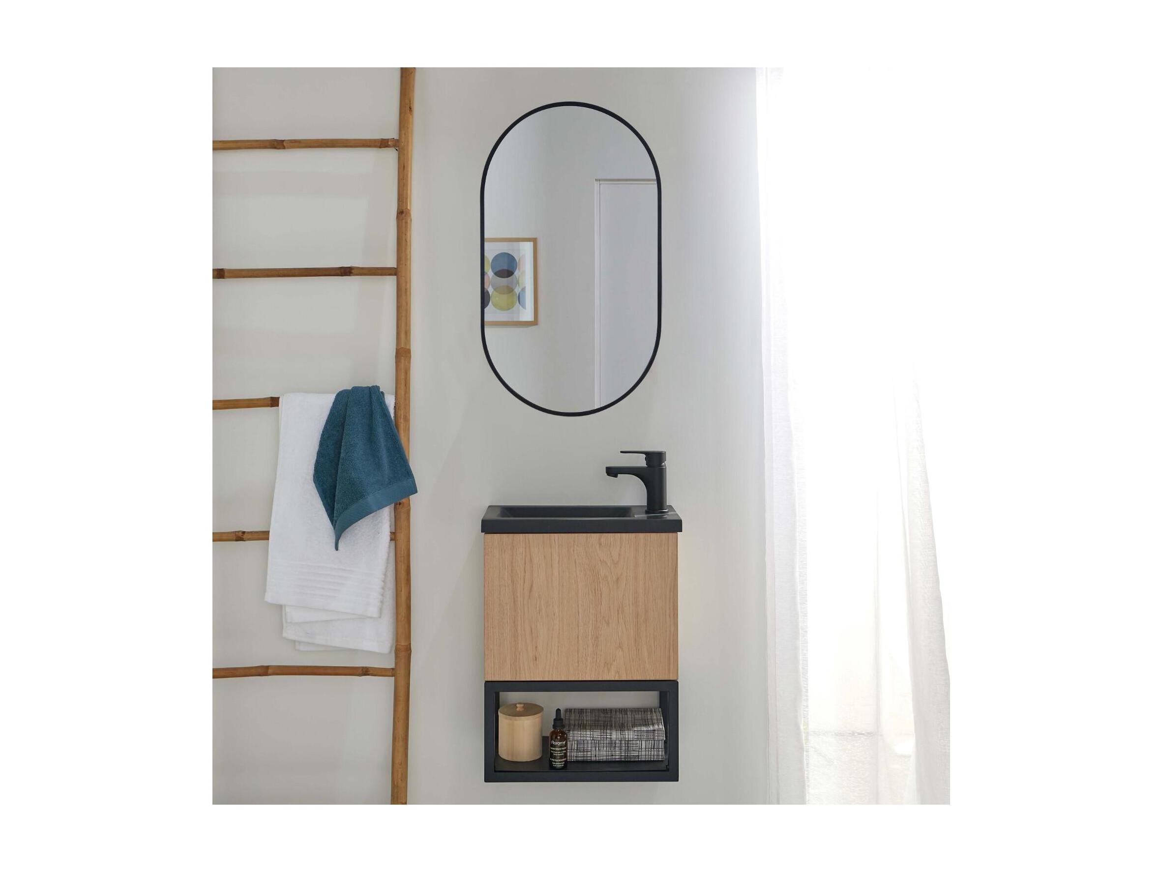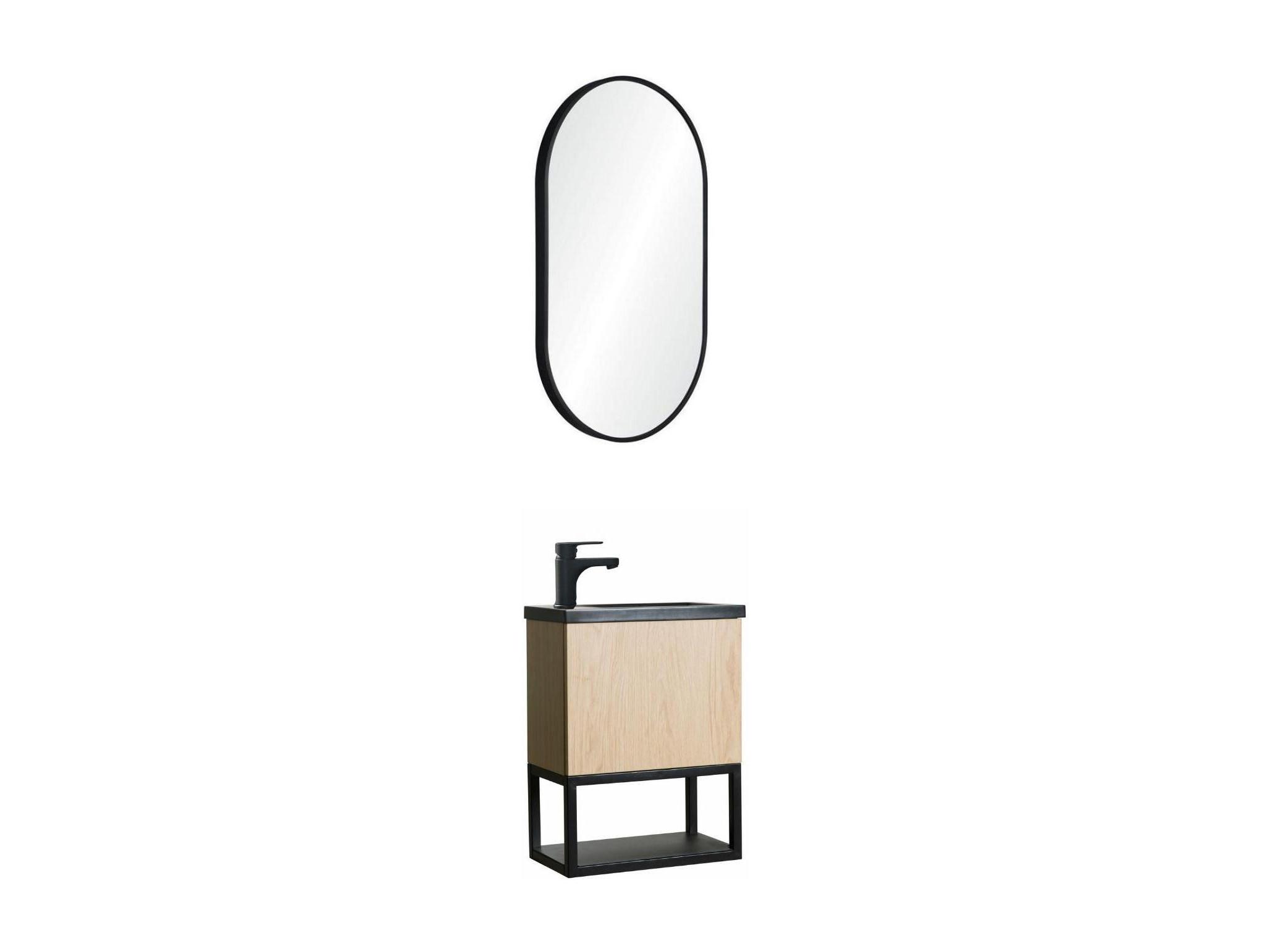 Conjunto de lavabo NOVA de metal y madera con espejo ovalado