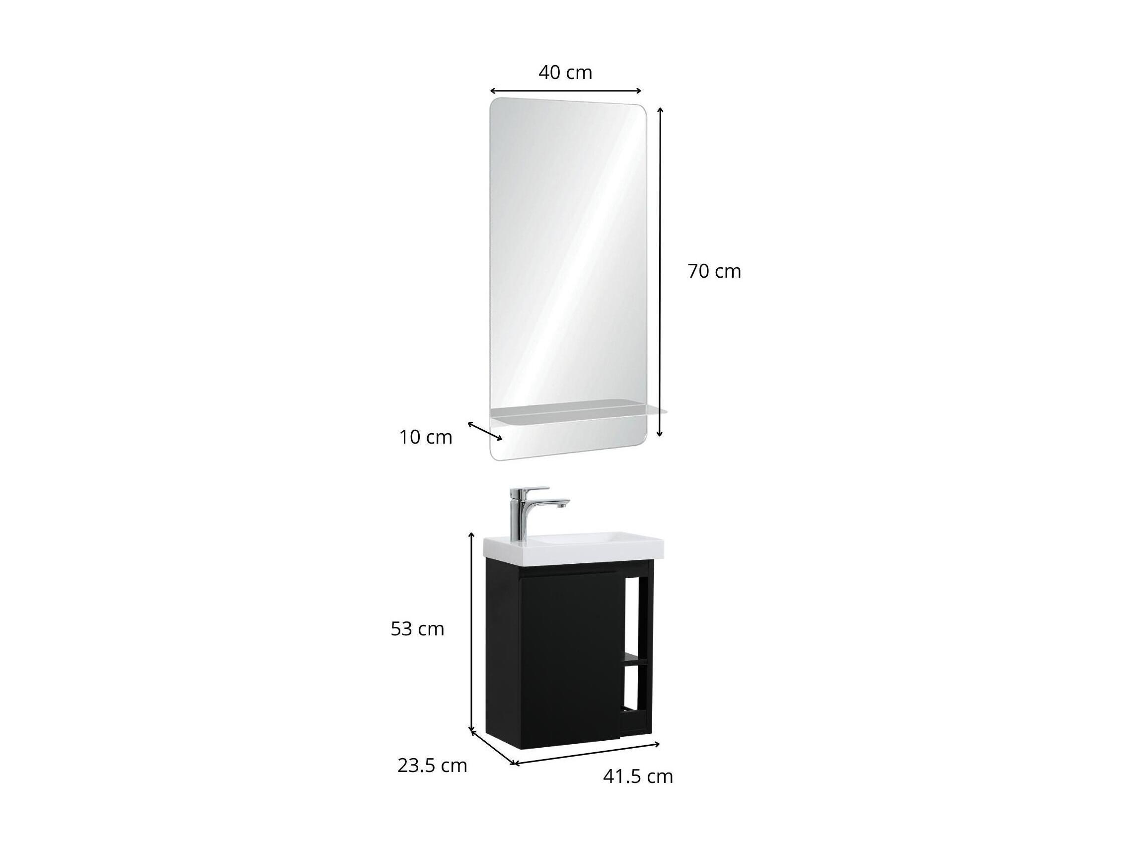 Conjunto de lavabo negro HAMPTON con almacenamiento lateral y estante de espejo