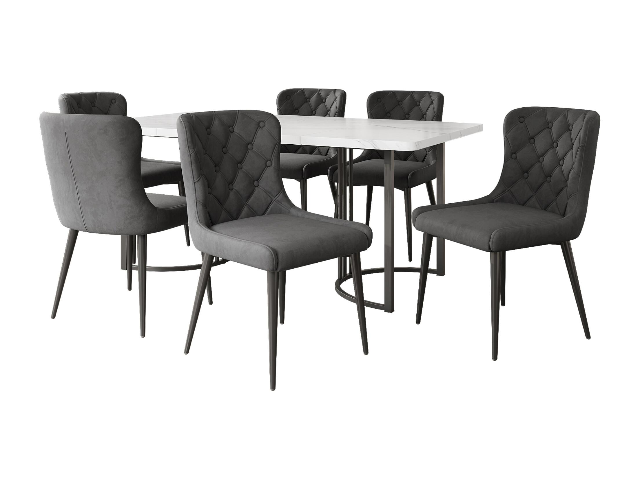 Conjunto de mesa 7 piezas 140x80 cm tablero MDF + 6 sillas de terciopelo gris oscuro con patas de metal negro