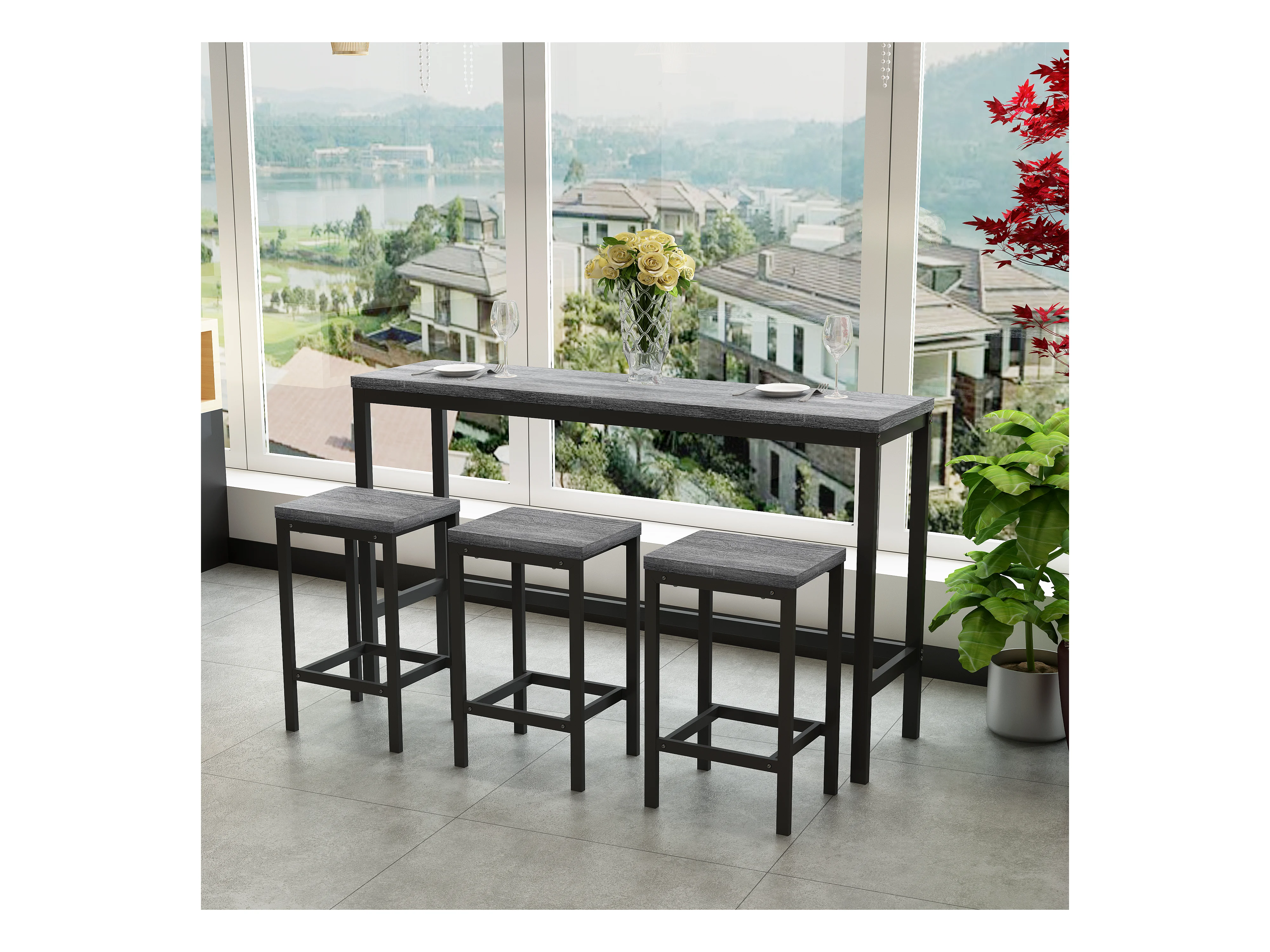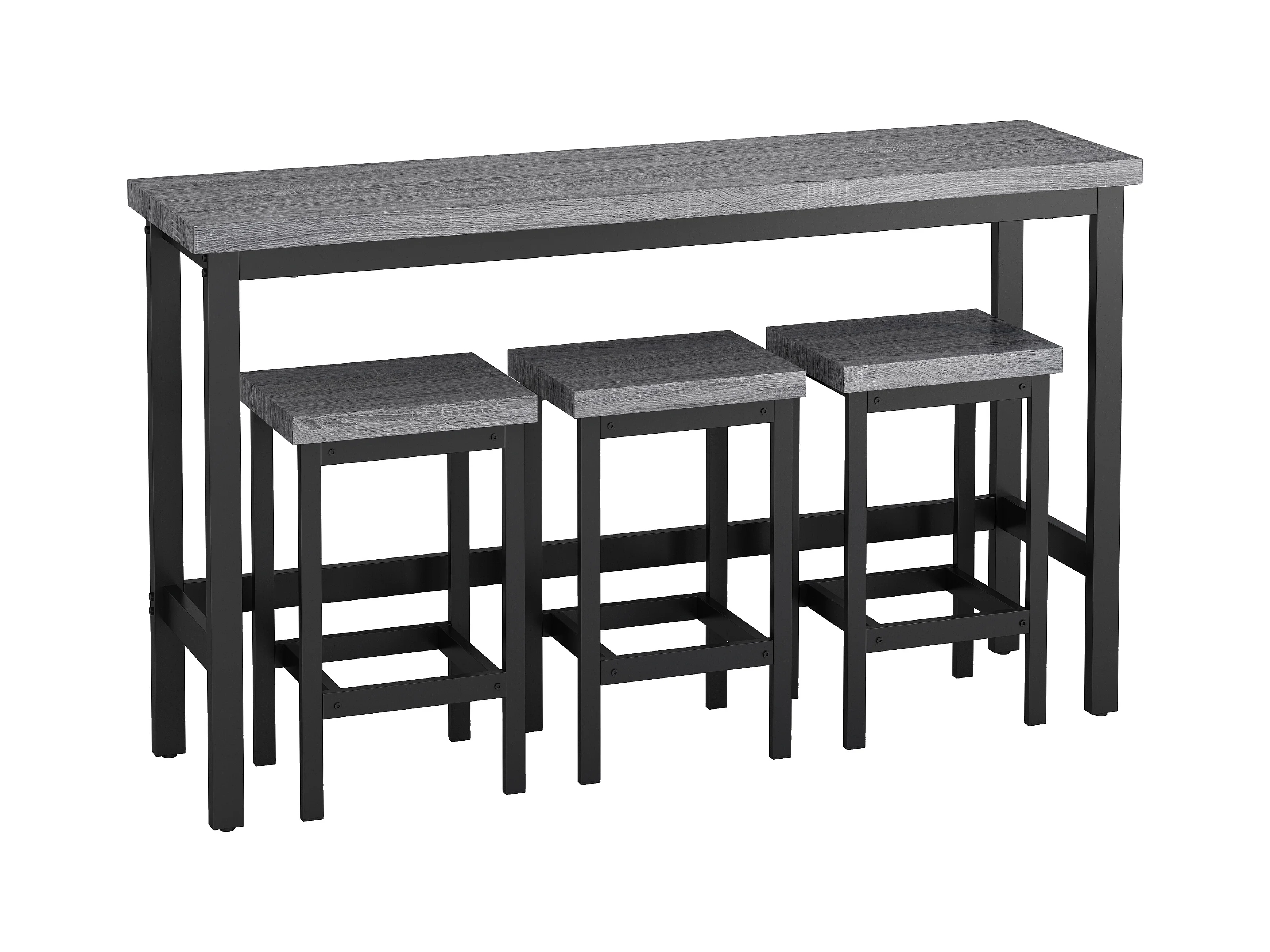 Conjunto de mesa alta 4 piezas MDF metal cocina comedor gris 148x40x90 cm