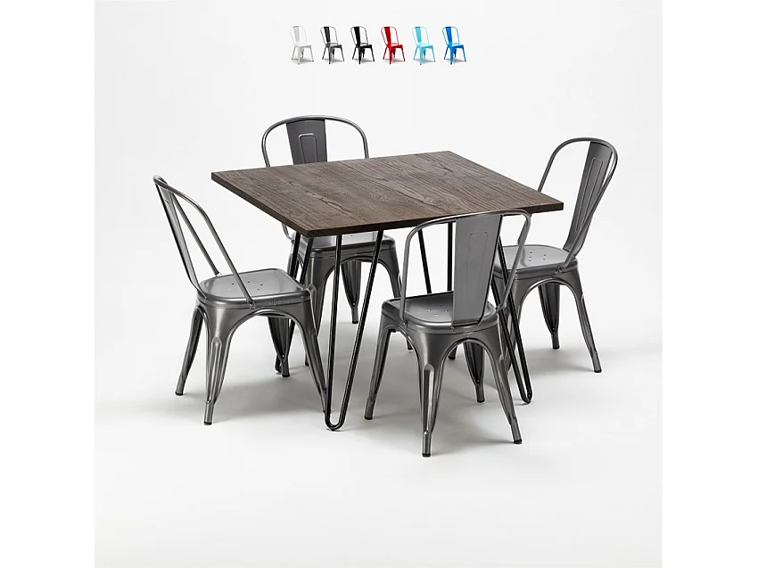 conjunto de mesa cuadrada madera y sillas en metal en estilo industrial pigalle - Gris