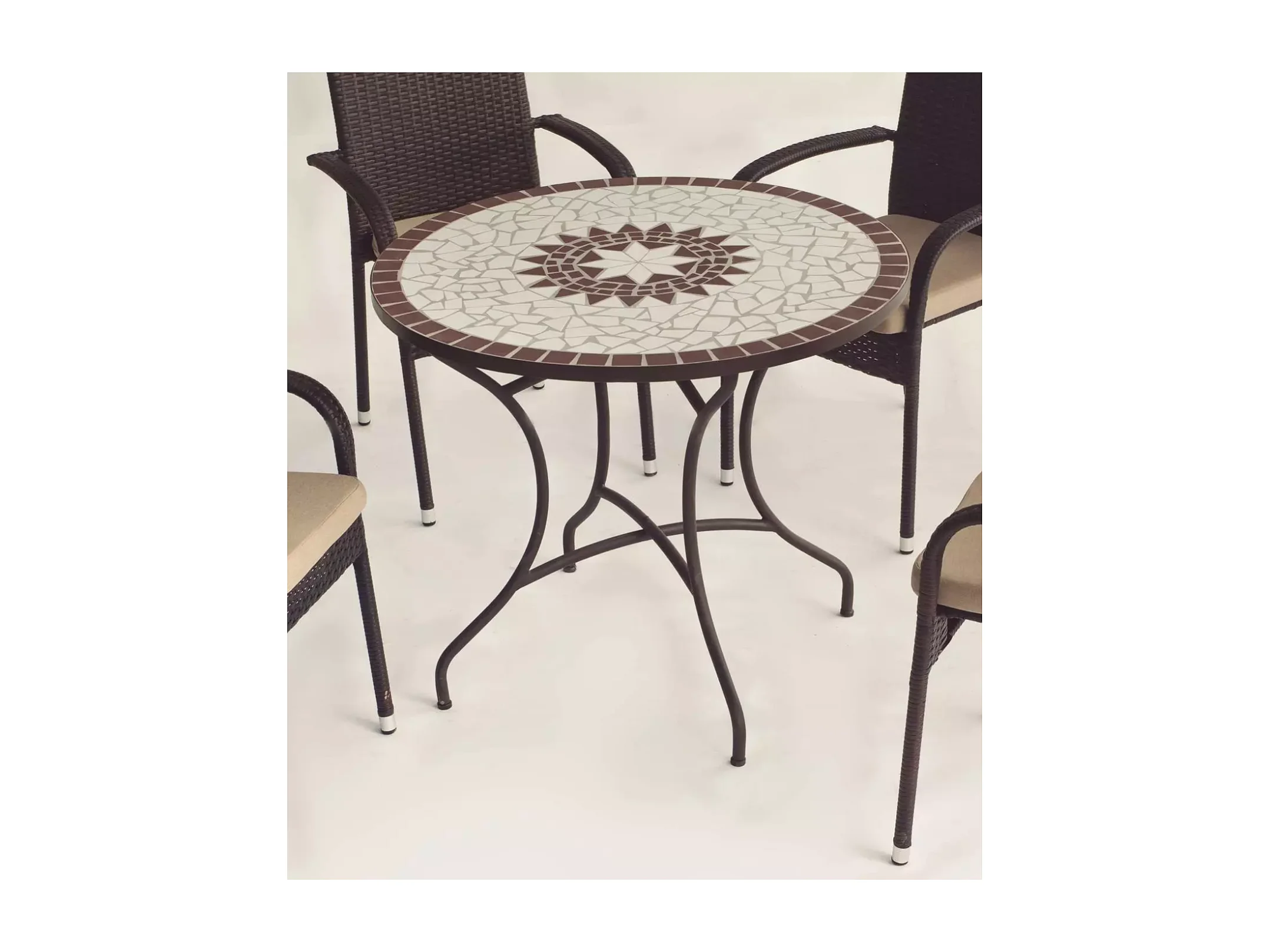 Conjunto de mesa y 4 sillones con cojines para jardin Estela/Bahia-90/4.