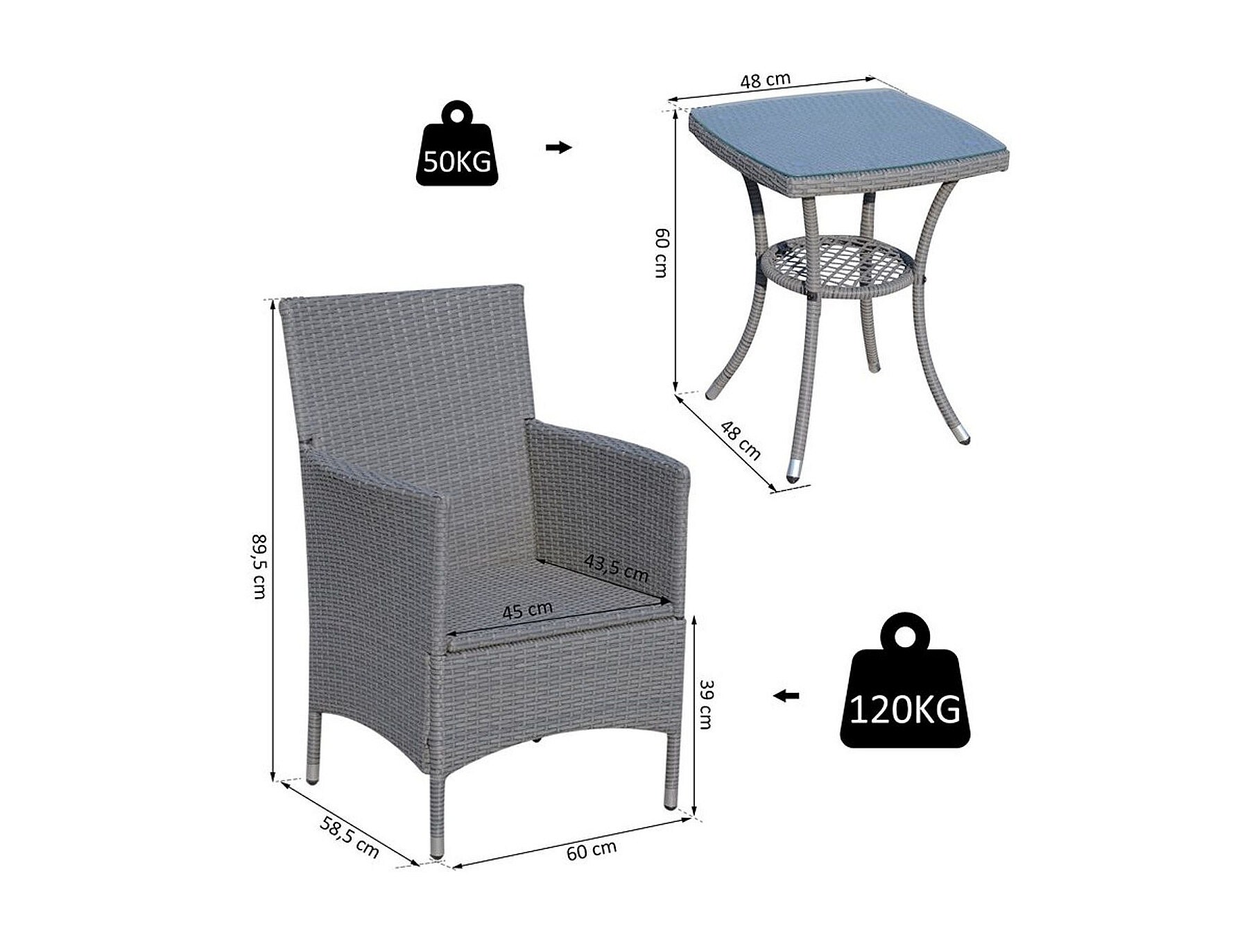 Conjunto de muebles ratán para jardín gris 60x58.5x89.5 cm Outsunny