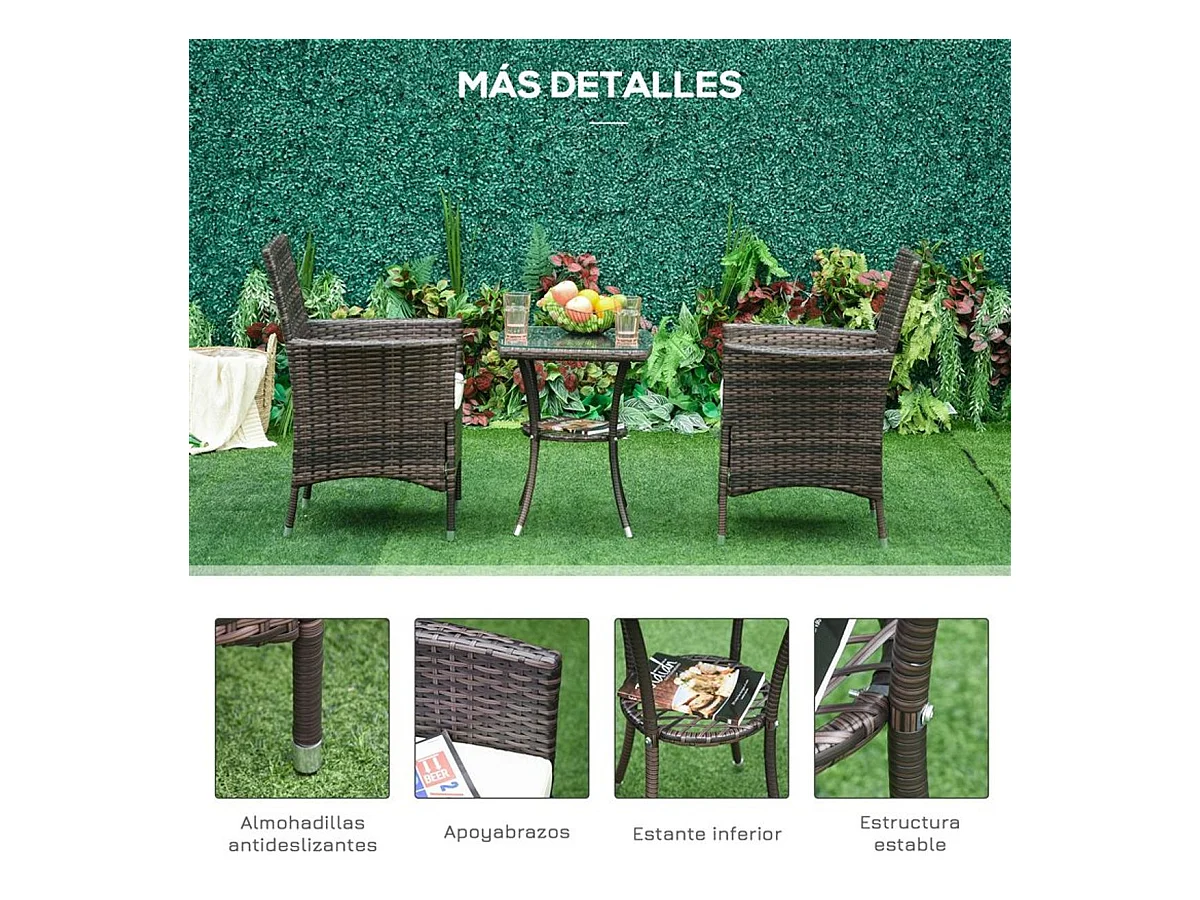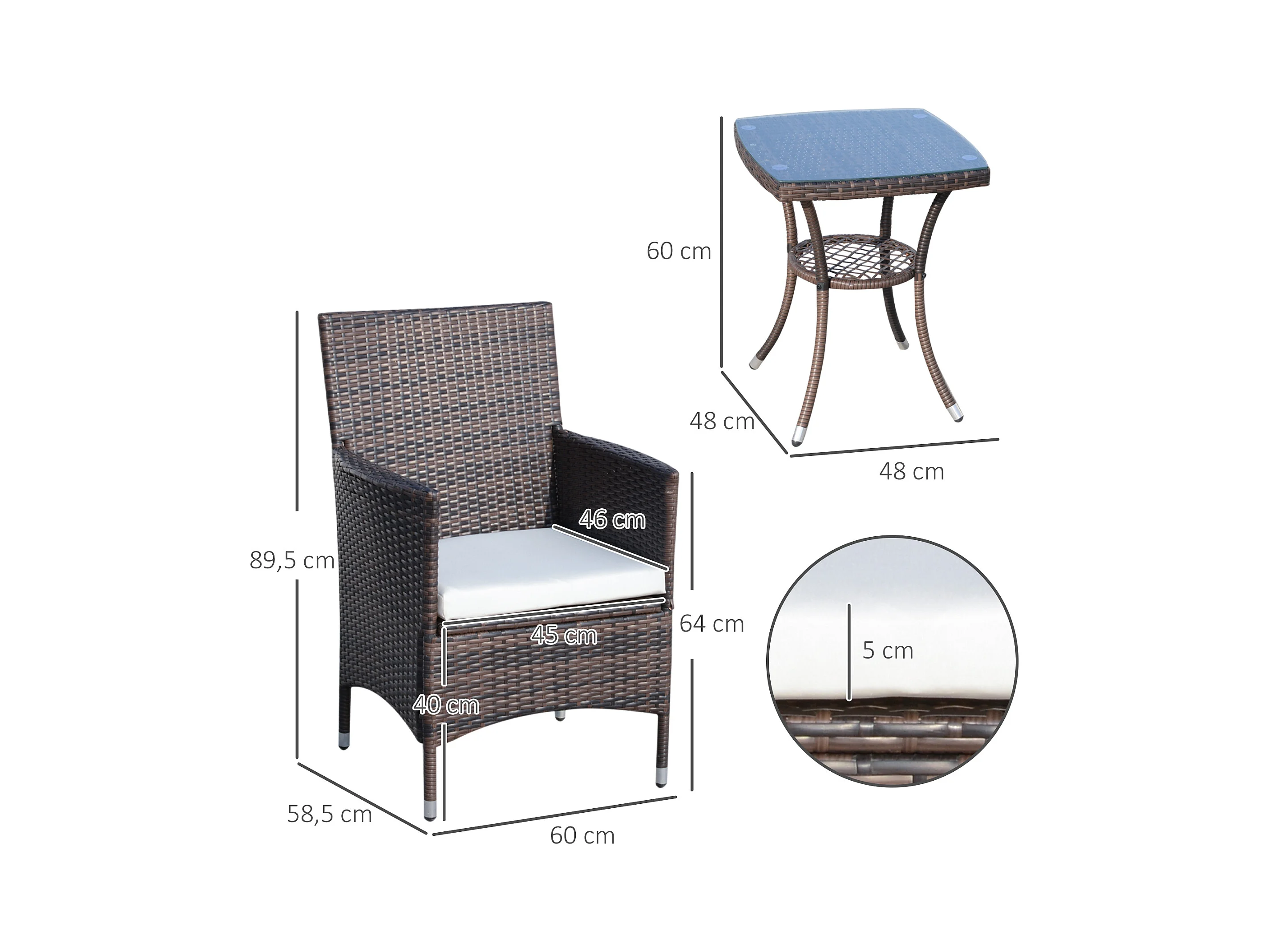 Conjunto de muebles de exterior de ratán marrón 60x58.5x89.5 cm Outsunny