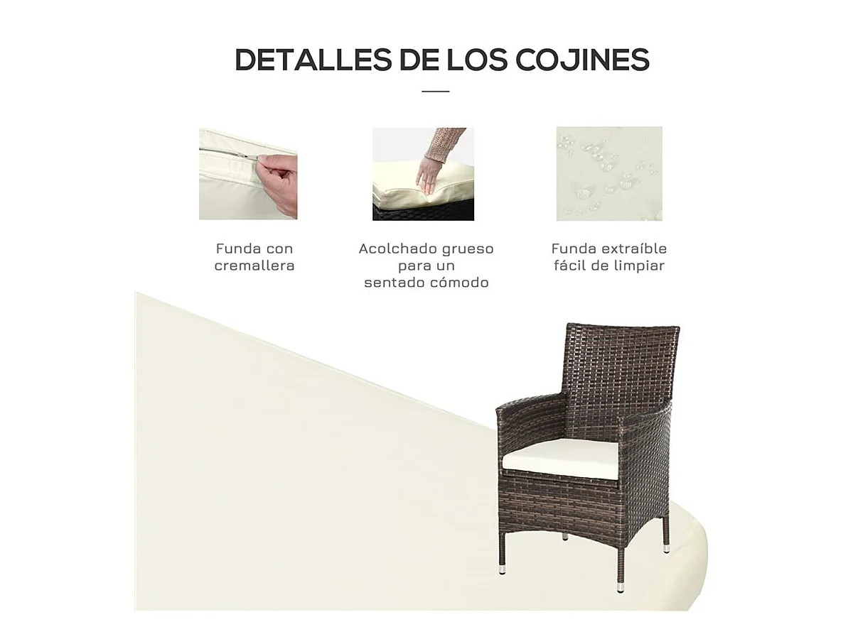Set muebles de jardín 2 piezas y cojines ratán sintético marrón