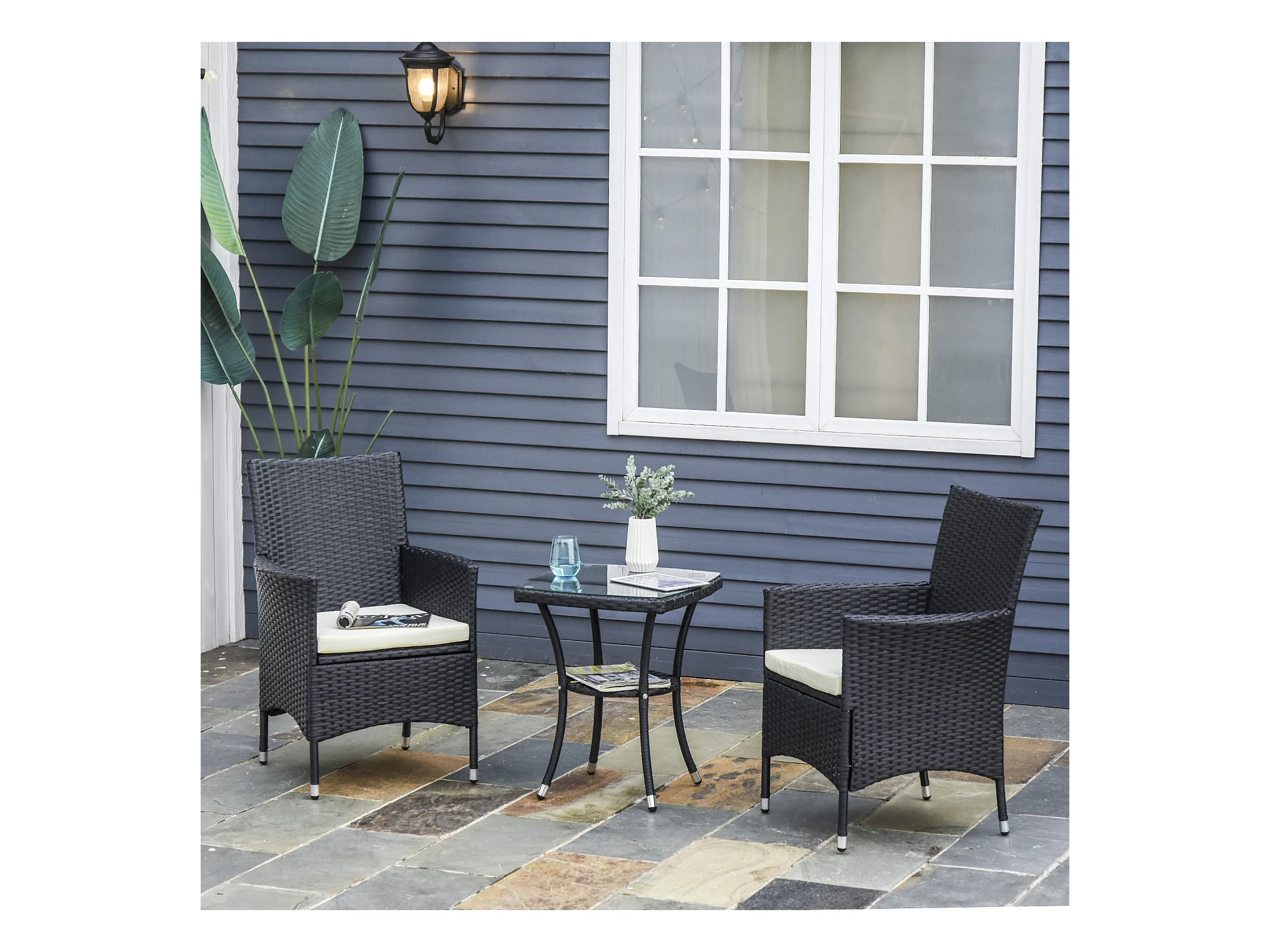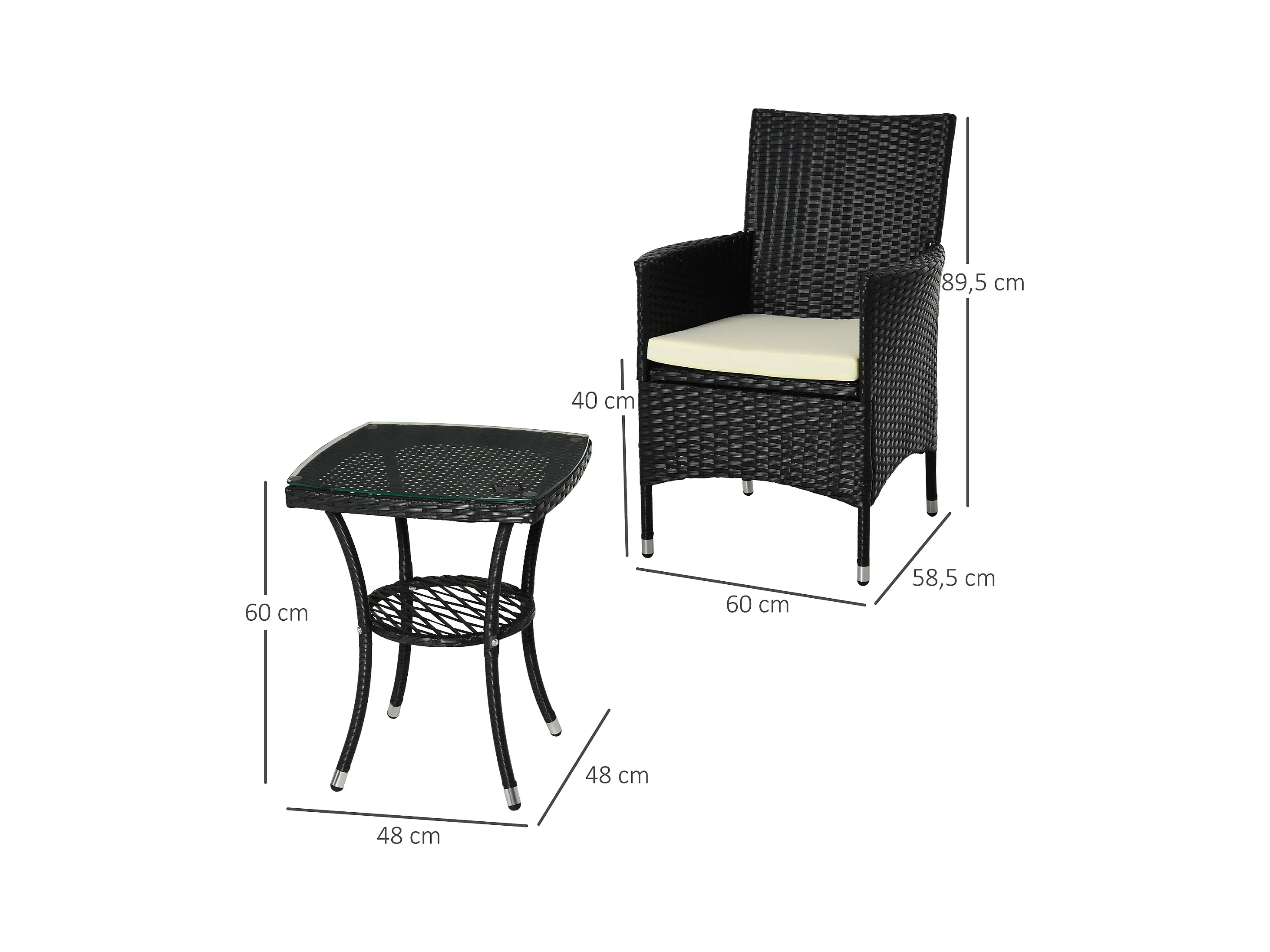 Conjunto de muebles ratán para jardín negro 60x58,5x89,5 cm Outsunny