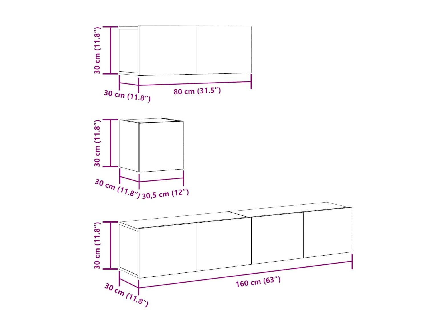 Conjunto de mueble de TV 4 piezas montado la pared madera vieja