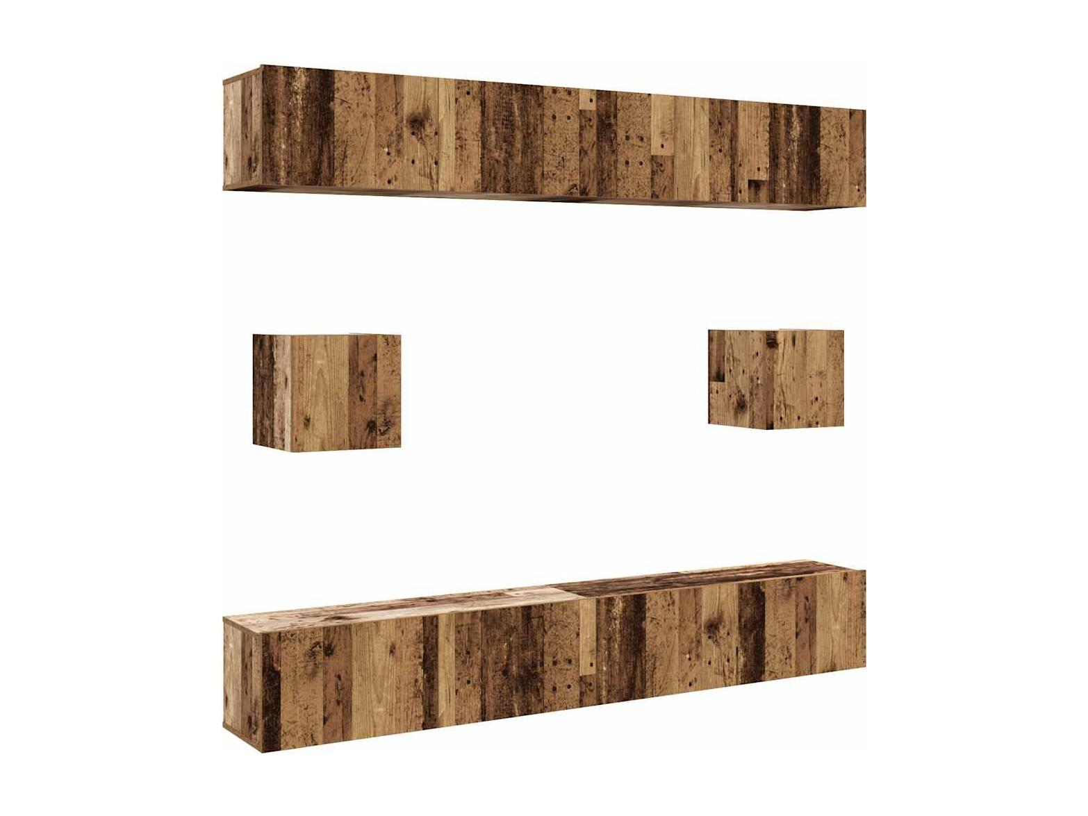 Conjunto de mueble de TV 5 piezas montado la pared madera vieja