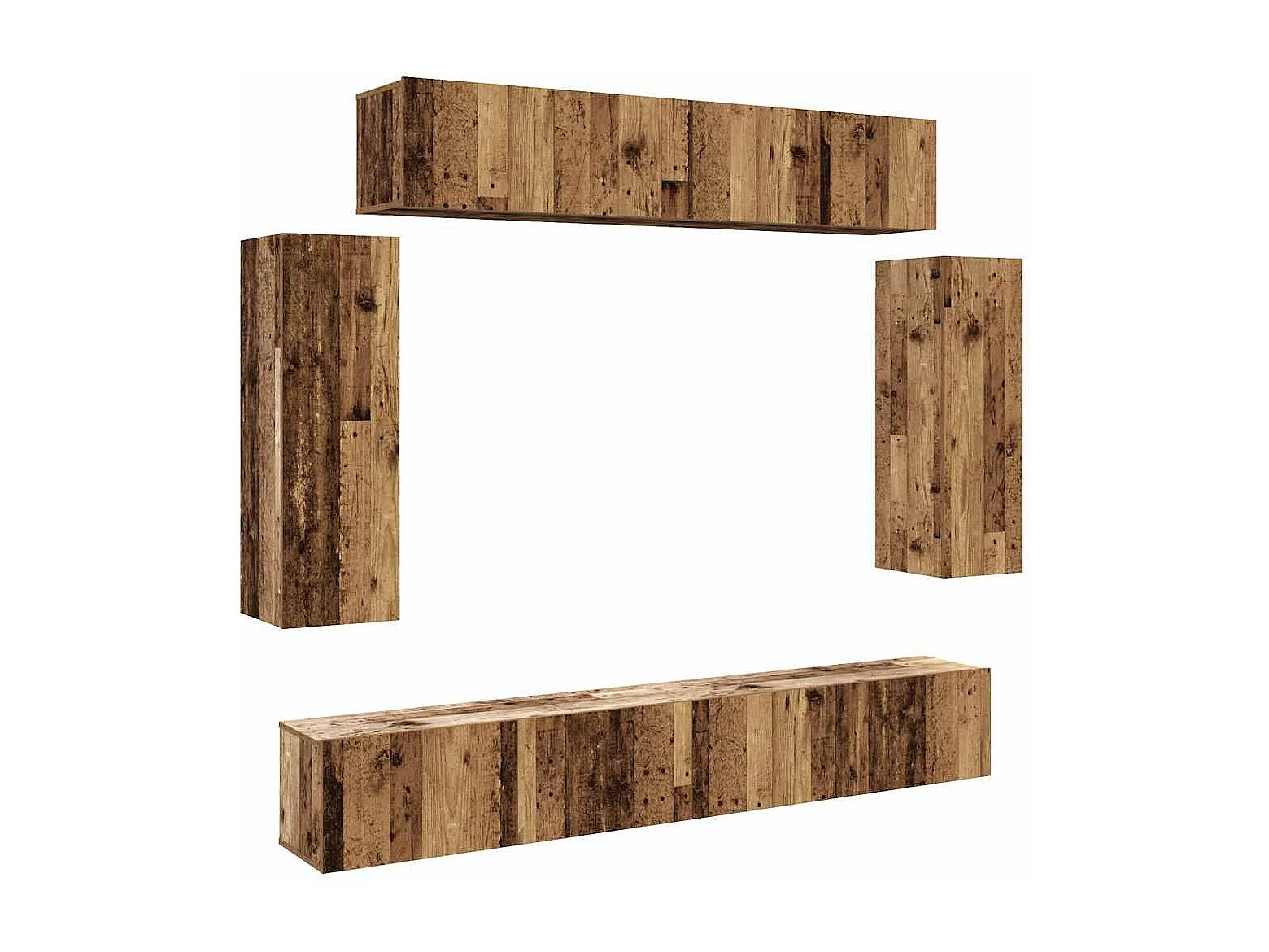 Conjunto de mueble de TV 6 piezas montado la pared madera vieja